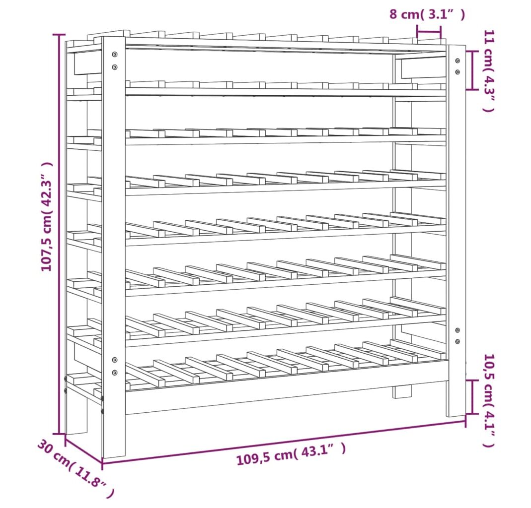 Suport de vinuri, 109,5x30x107,5 cm, lemn masiv de pin