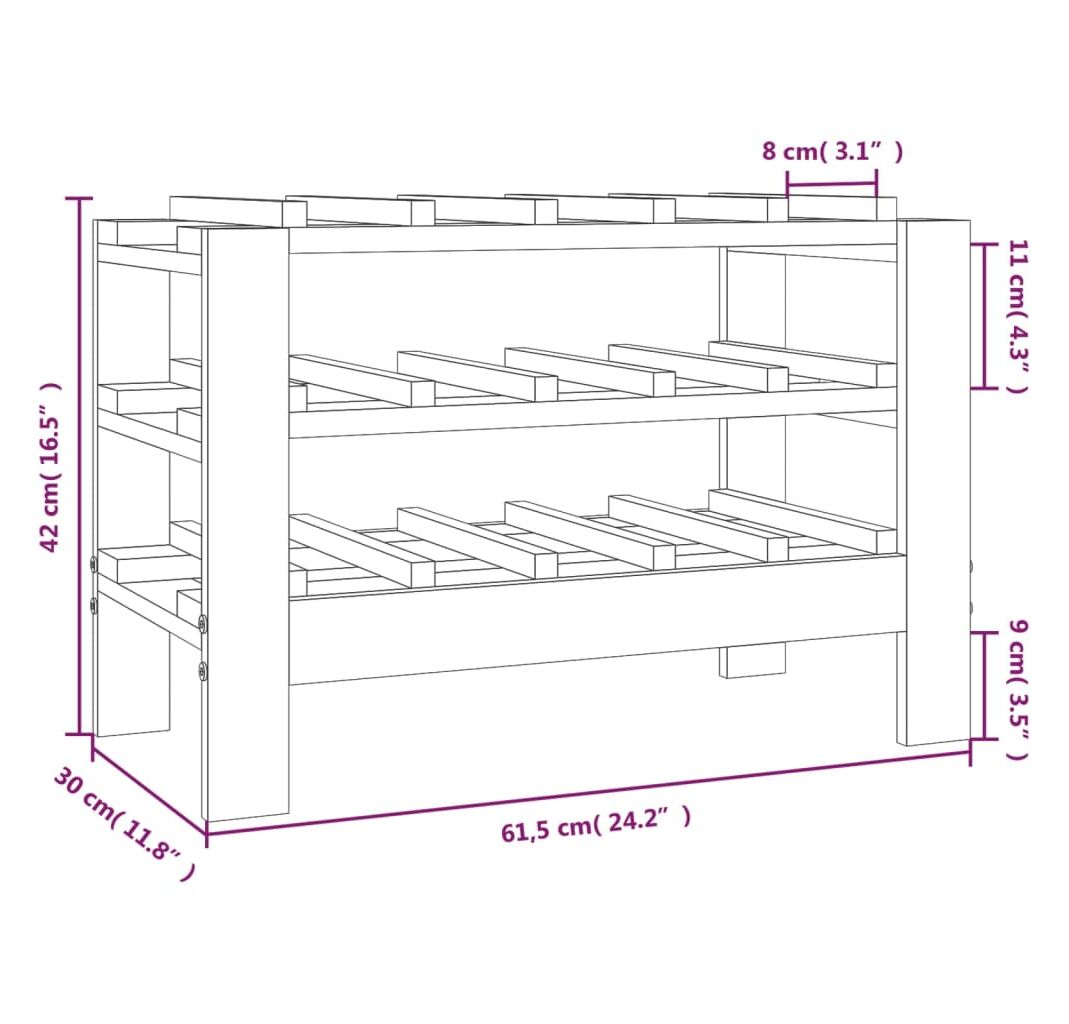 Cantitatea minima pentru "Suport de vinuri, 61,5x30x42 cm, lemn masiv de pin" este 1.