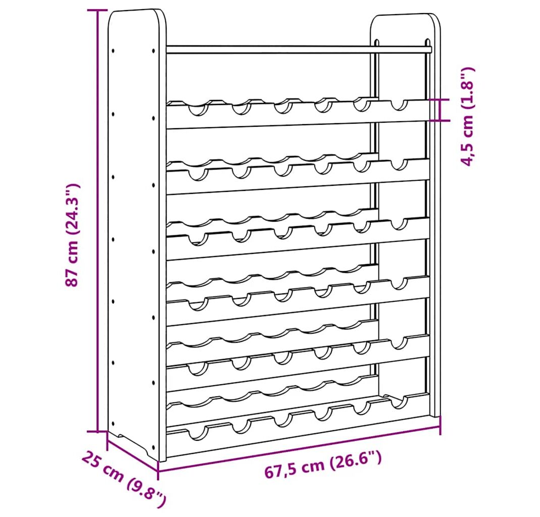 - Lemn masiv de pin: Acest suport pentru sticle de vin este realizată din lemn masiv de pin. Lemnul masiv de pin este un material natural frumos. Lemnul de pin are fibre drepte, iar nodurile dau materialului unicitate și un aspect rustic.