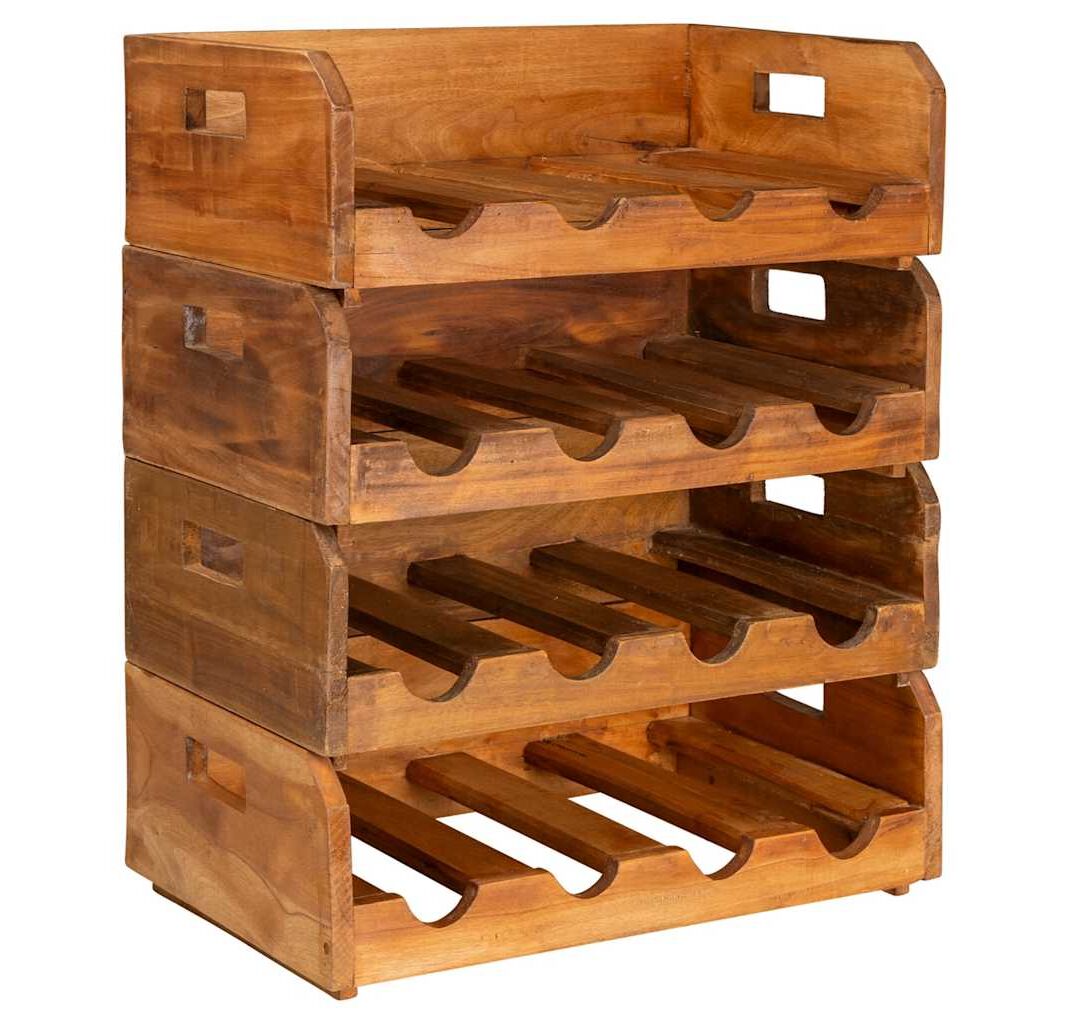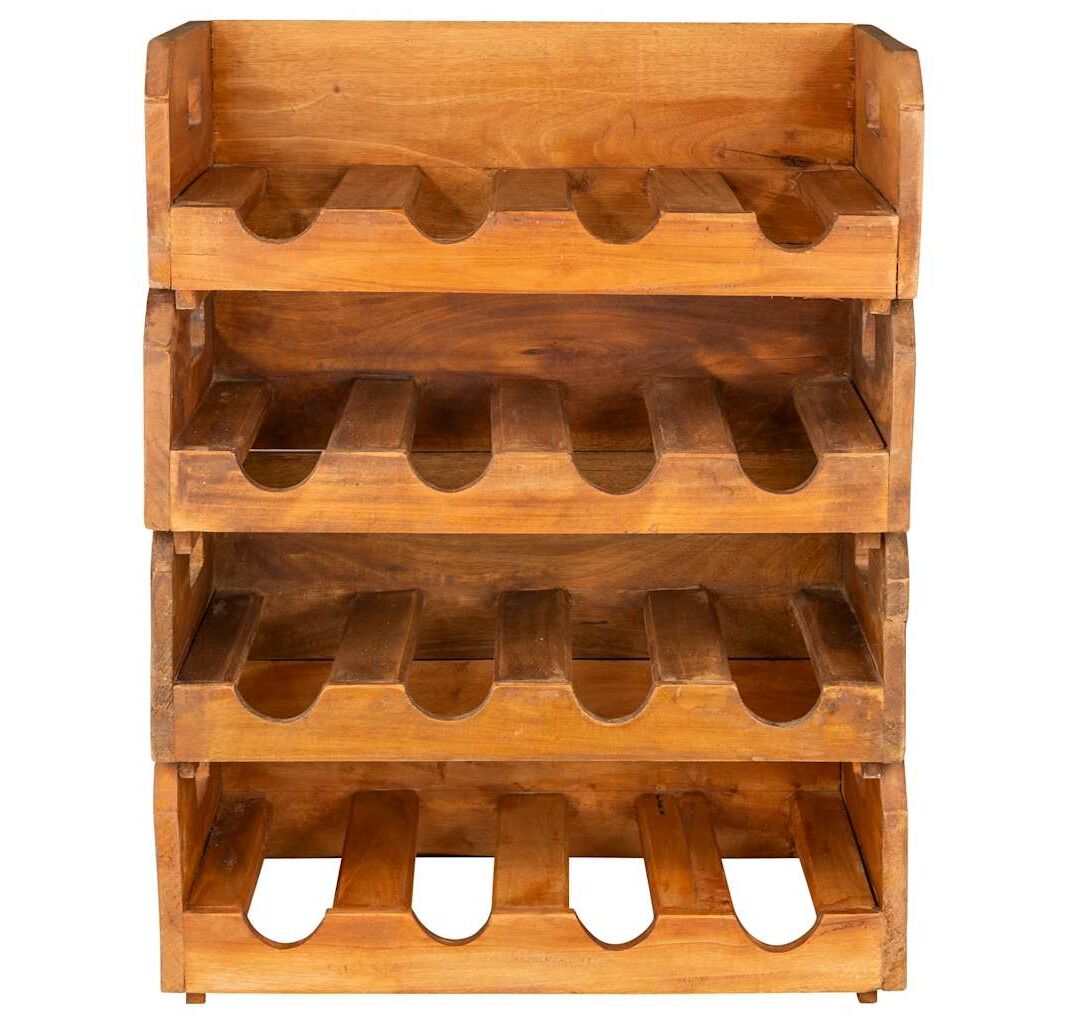 Acest set de 4 rafturi de vin, din lemn, este perfect pentru pasionații de vin și va adăuga o notă de farmec rustic oricărui interior. Fiecare raft poate susține 4 sticle.