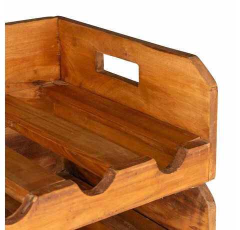 Setul de suporturi pentru sticle de vin are un design simplu, dar mereu la modă. Datorită mânerelor integrate, aceste suporturi pentru sticle pot fi mutate cu ușurință. Pot fi utilizate separat sau stivuite, pentru a forma un suport pentru sticle de vin, cu niveluri multiple. Acest set de suporturi pentru sticle de vin este realizat manual, cu cea mai mare grijă.