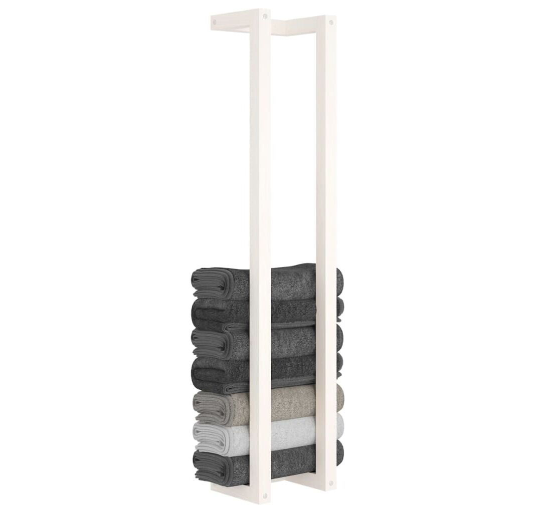 Suport pentru prosoape, alb, 23x18x110 cm, lemn masiv de pin