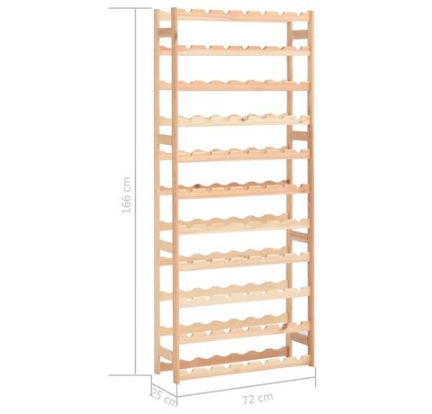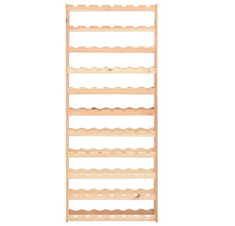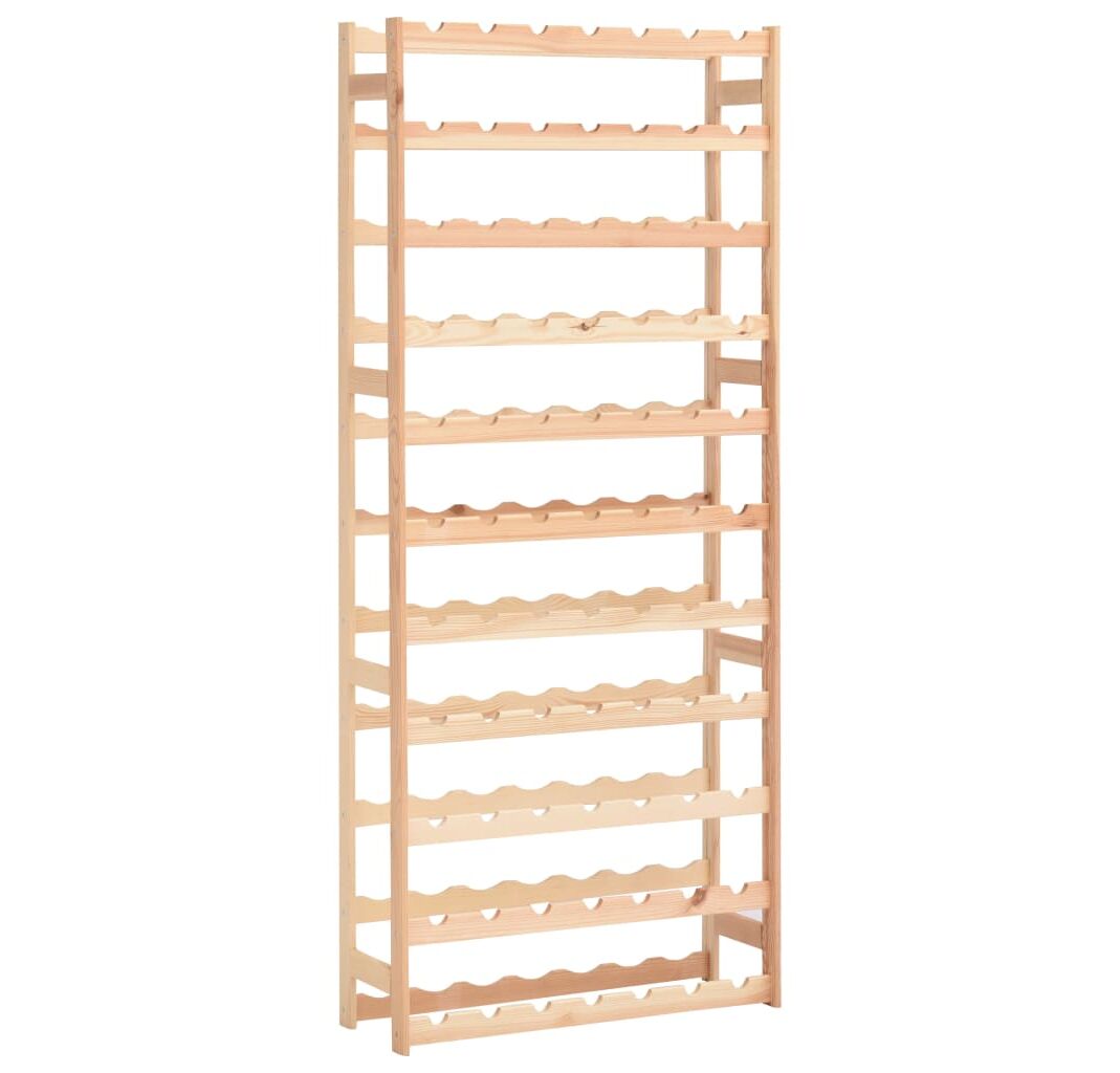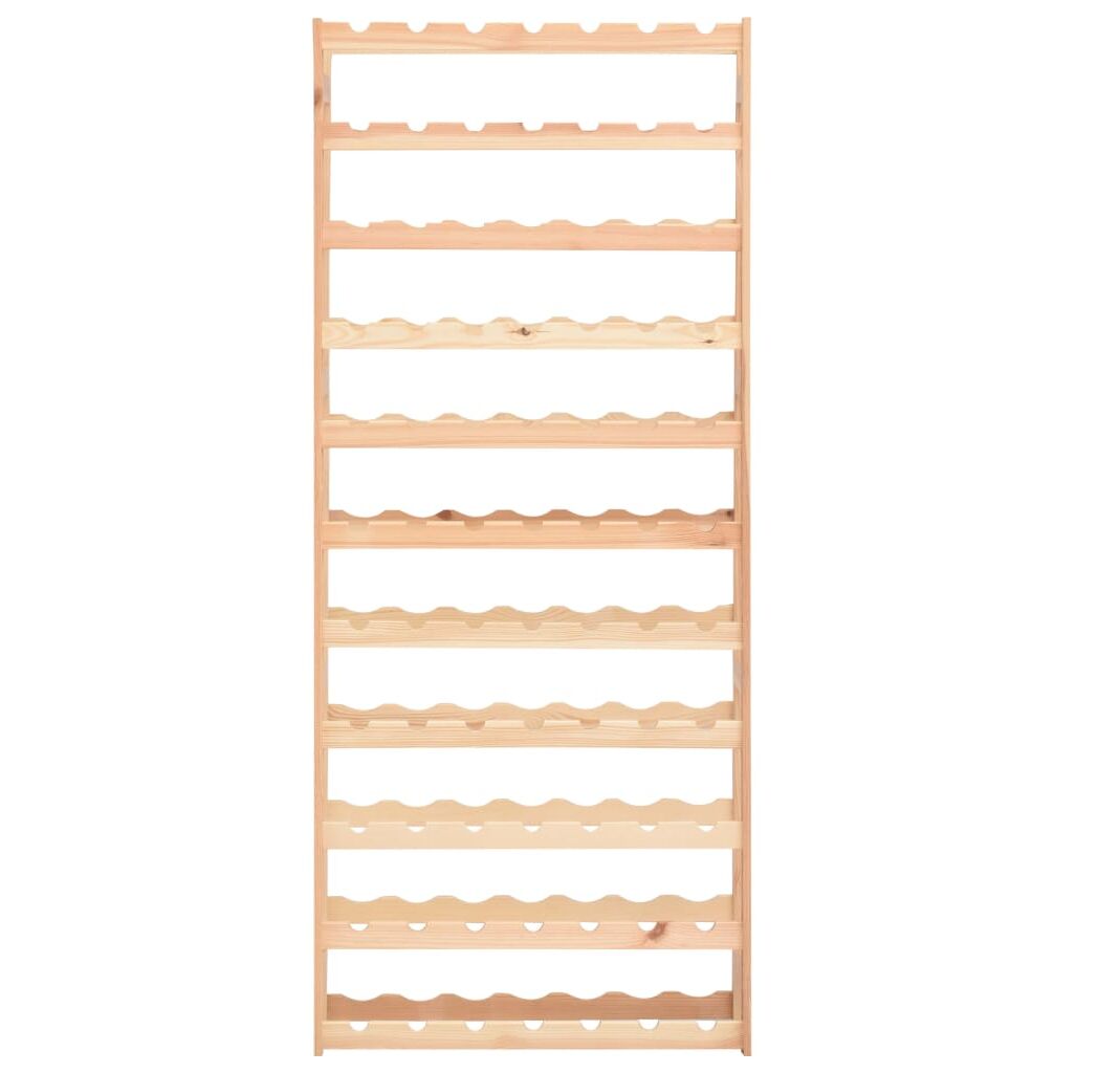 Suportul de vin susține până la 77 sticle de vin. Fabricat din lemn masiv de pin, acesta este extrem de rezistent! Puteți să îi păstrați culoarea naturală sau să îi aplicați un strat de vopsea ori alt finisaj în culoarea preferată. Datorită materialelor de montaj incluse, suportul nostru pentru vin este ușor de asamblat.