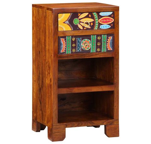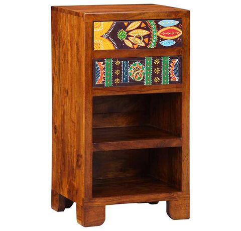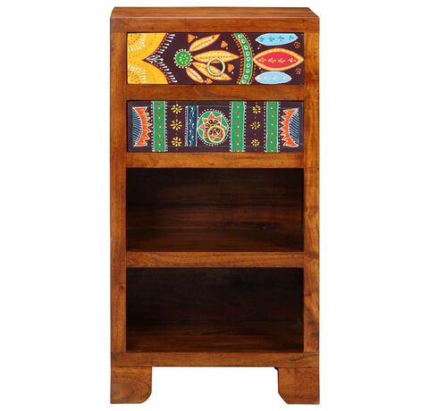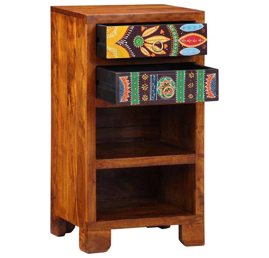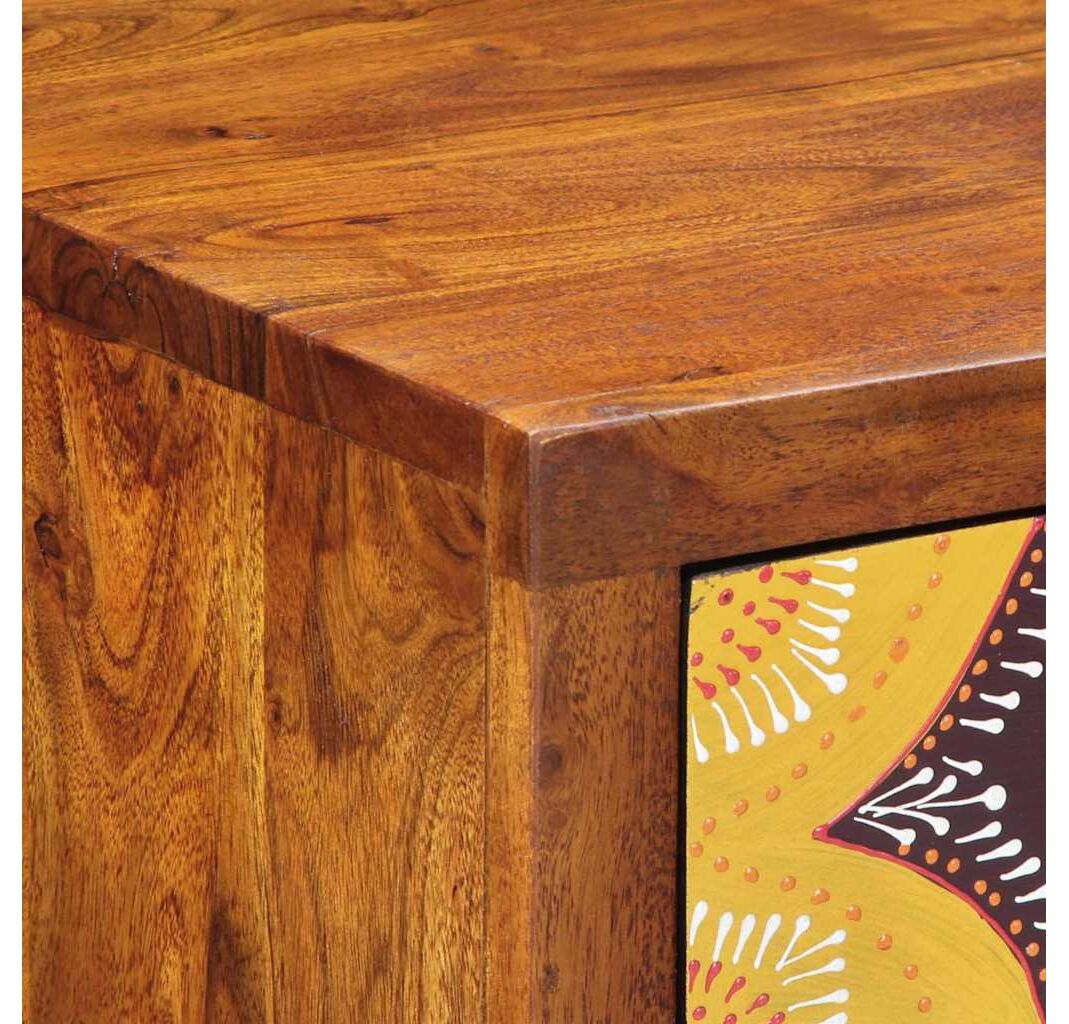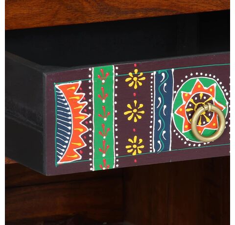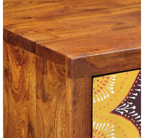 Masă laterală dreptunghiulară din lemn solid de mango, o adiție excelentă pentru orice spațiu. Cu un design geometric pictat manual și finisaj lustruit, aduce o vibra faină care se potrivește cu multe stiluri de decor, de la modern la rustic. Imaginează-ți să pui masa lângă canapea sau fotoliu; e nu doar utilă, dar și atrăgătoare, combinând practicitatea cu stilul.