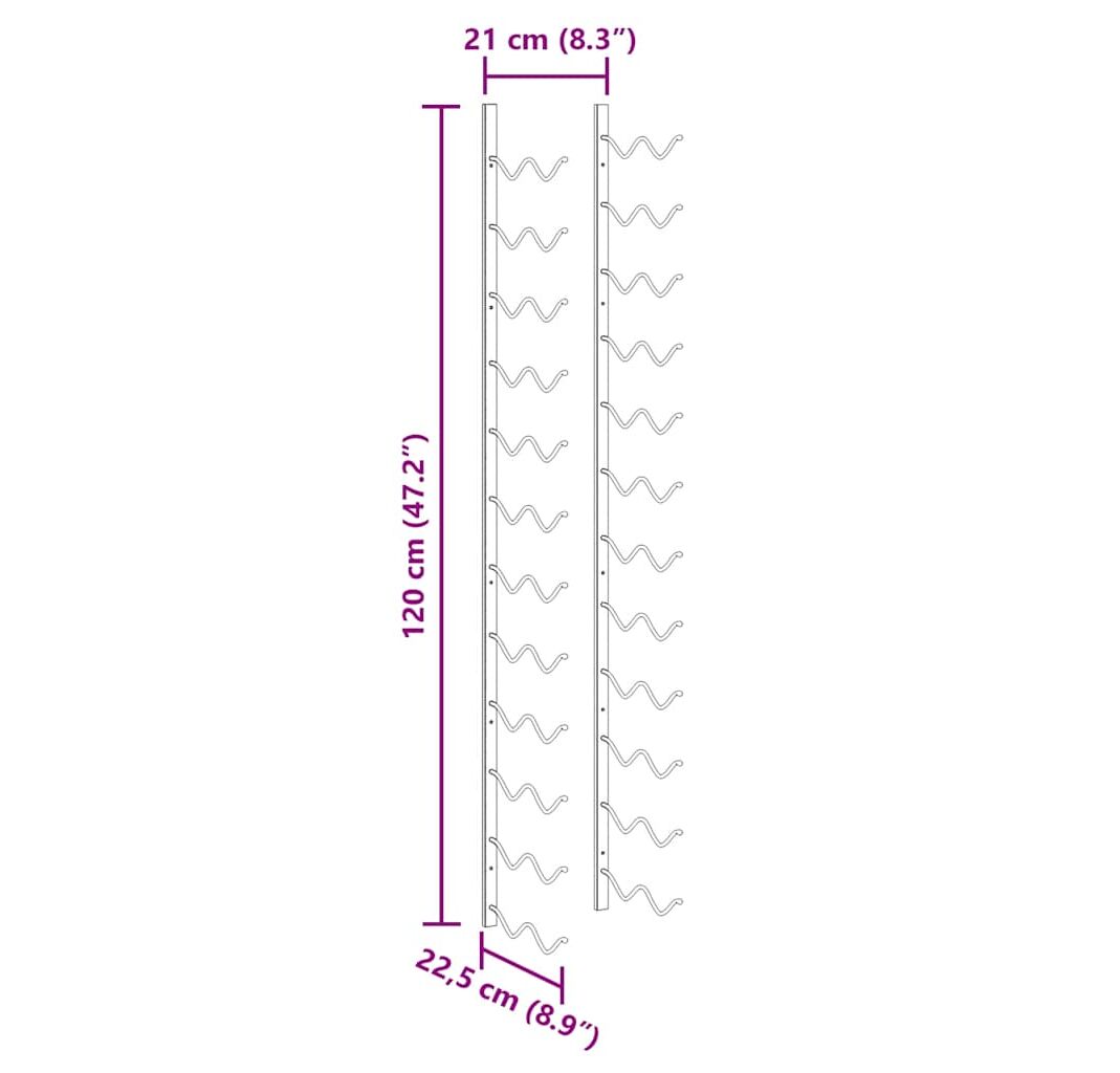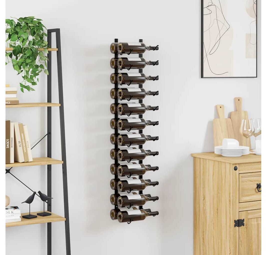 Acest suport pentru vin susține până la 24 sticle de vin. Este realizat din fier vopsit electrostatic, fiind extrem de durabil și ușor de întreținut. Este o alegere ideală pentru a face un cadou prietenilor și cunoscuților dvs. iubitori de vin. În plus, cu materialele de montare incluse, acest suport pentru sticle de vin poate fi atașat cu ușurință pe perete. De asemenea, este ușor de asamblat.