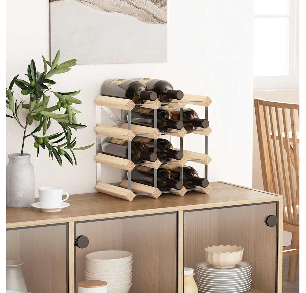 Acest suport de sticle de vin poate depozita până la 12 de sticle. Designul său simplu și minimalist adaugă o notă de farmec rustic spațiului dvs de locuit. De asemenea, va fi un cadou minunat pentru prietenii și cunoscuții dvs. iubitori de vin. Fiind fabricat din oțel galvanizat și lemn masiv, acesta este extrem de rezistent! Datorită materialelor de montaj incluse, suportul pentru vin este ușor de asamblat.