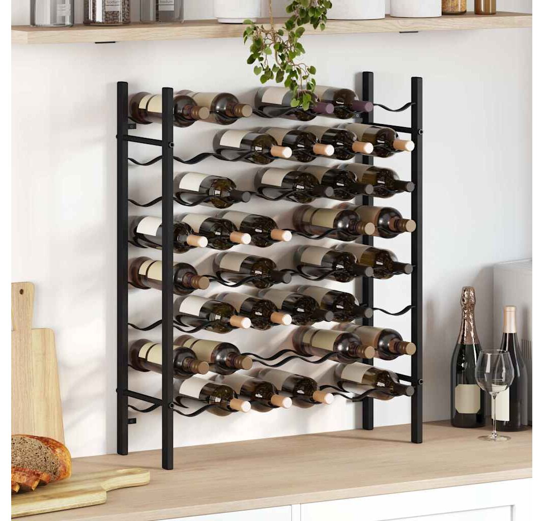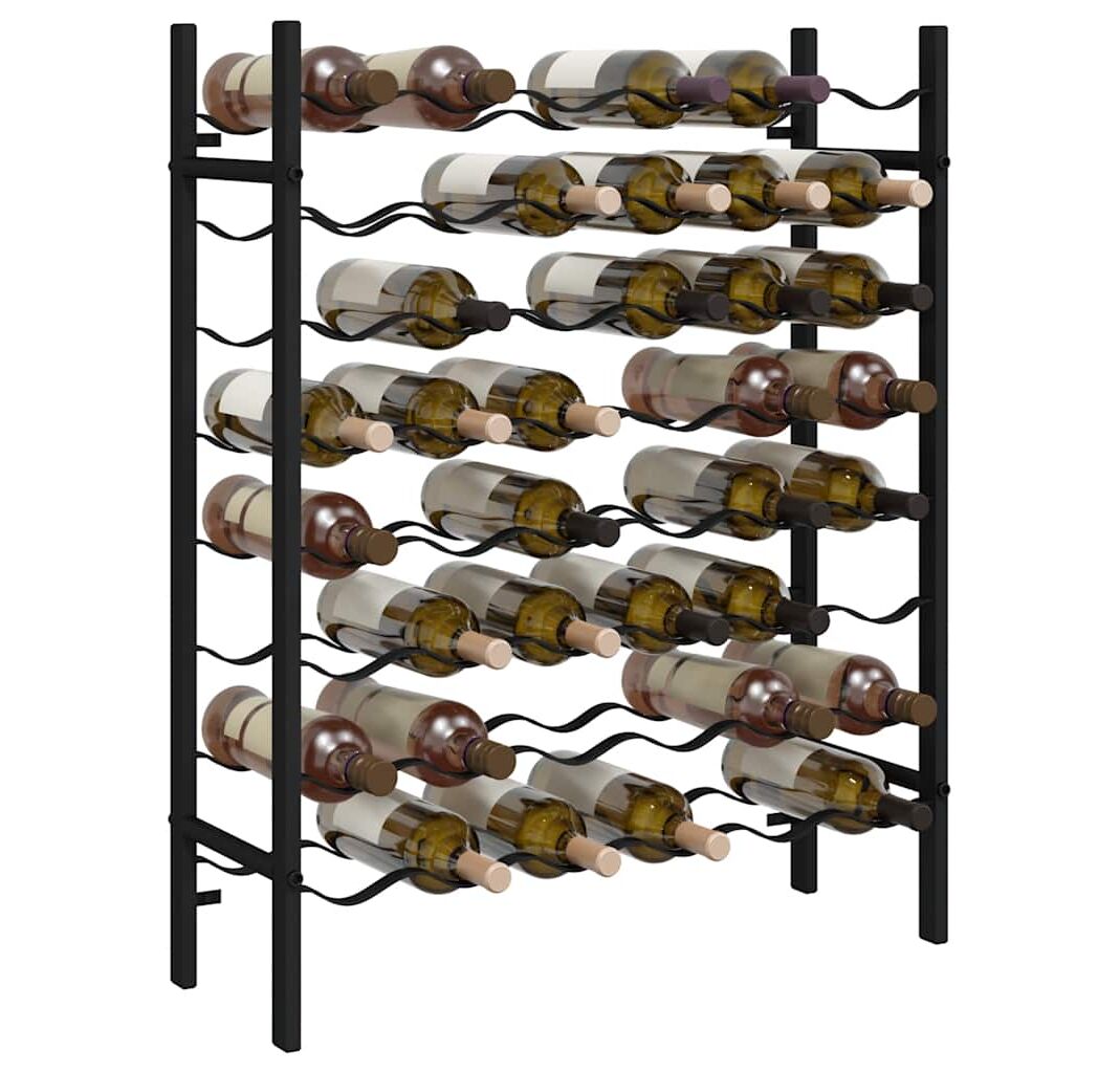 Acest suport pentru vin susține până la 48 sticle de vin. Este realizat din metal vopsit electrostatic, fiind extrem de durabil și ușor de întreținut. Este o alegere ideală pentru a face un cadou prietenilor și cunoscuților dvs. iubitori de vin. În plus, sticlele de vin pot fi stivuite pe această poliță de vinuri ușor de asamblat.