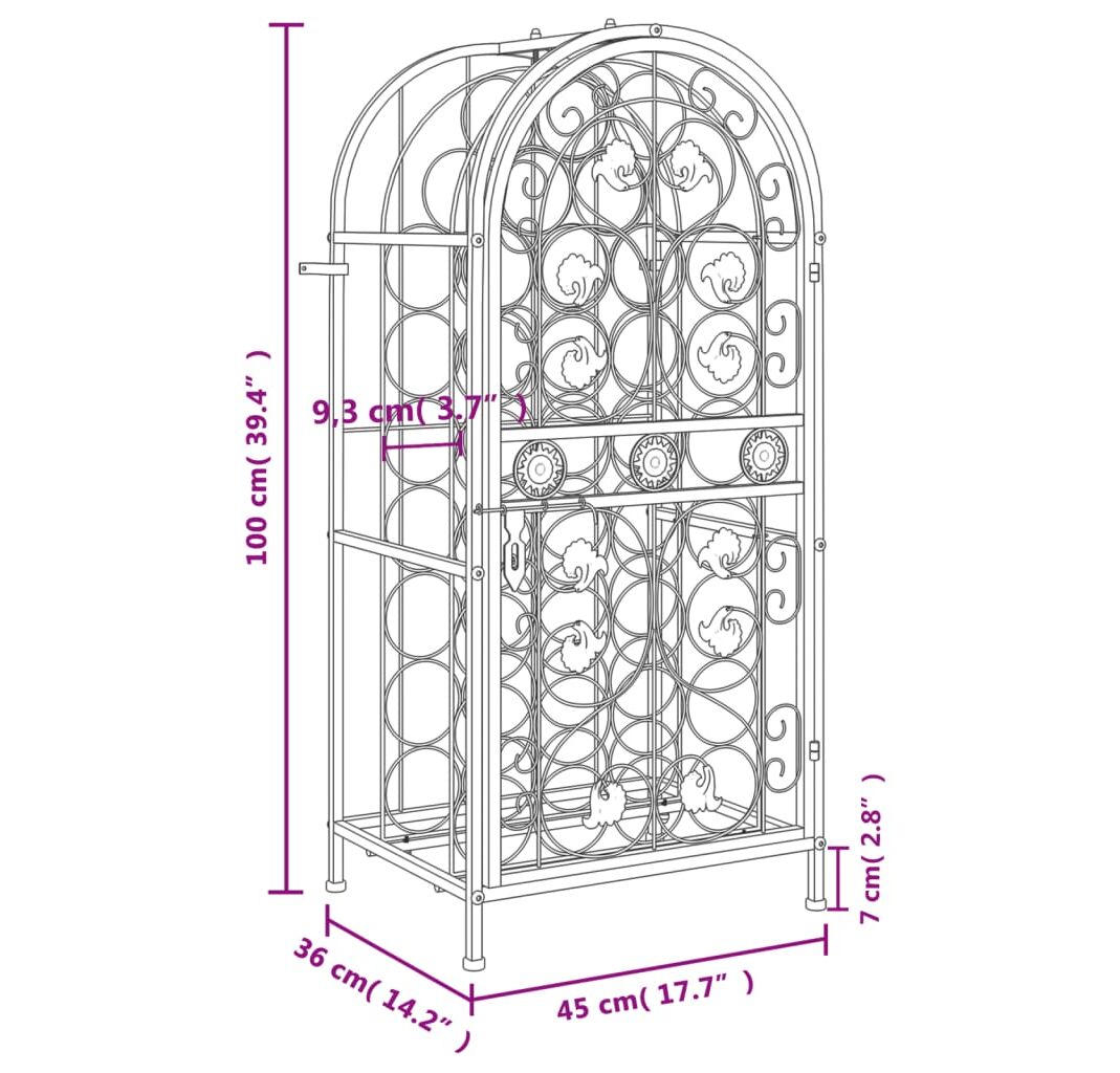- Construcție stabilă: Acest suport pentru sticle de vin este fabricat din fier forjat robust, cu un finisaj vopsit electrostatic negru, pentru a rezista la oxidare și rugină. Accesoriile de fixare pentru perete incluse împiedică balansarea sau înclinarea suportului de vin, fiind potrivit pentru ani de utilizare.