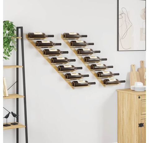 Suport sticle vin montat pe perete,2 buc.,7 sticle,auriu, metal