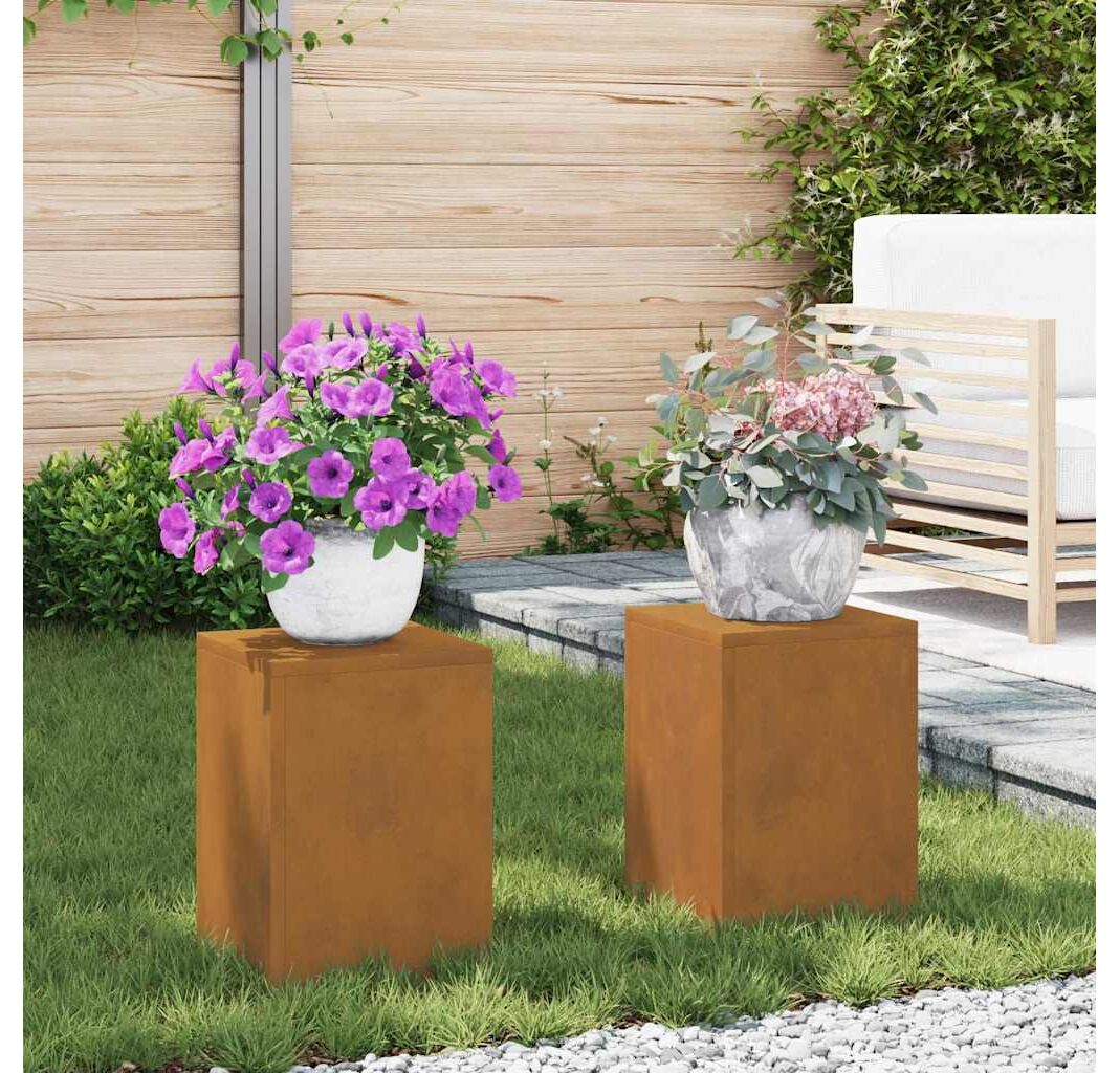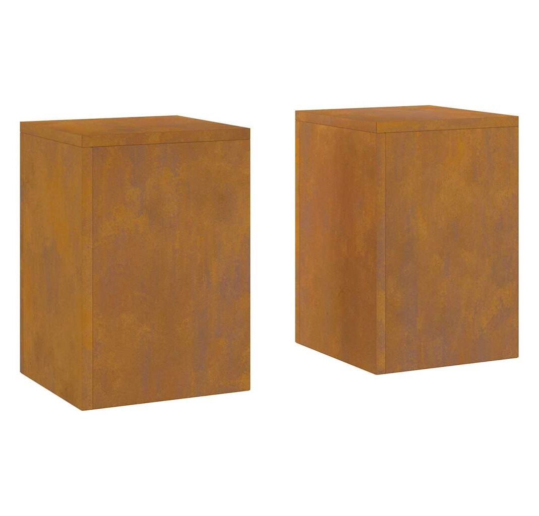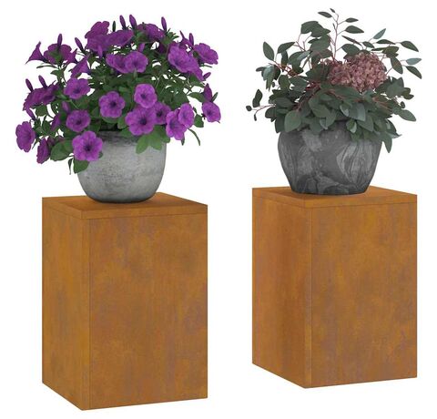 Acest set de suporturi pentru plante Exterioare vidaXL combină un stil modern cu un aspect ruginit, totul pentru a face grădina ta mai plăcută. Făcute din oțel robust, aceste vaze îmbunătățesc aesthetic grădinile, oferind în același timp un loc sigur pentru plantele tale dragi, fiind perfecte pentru orice tip de grădinărit.