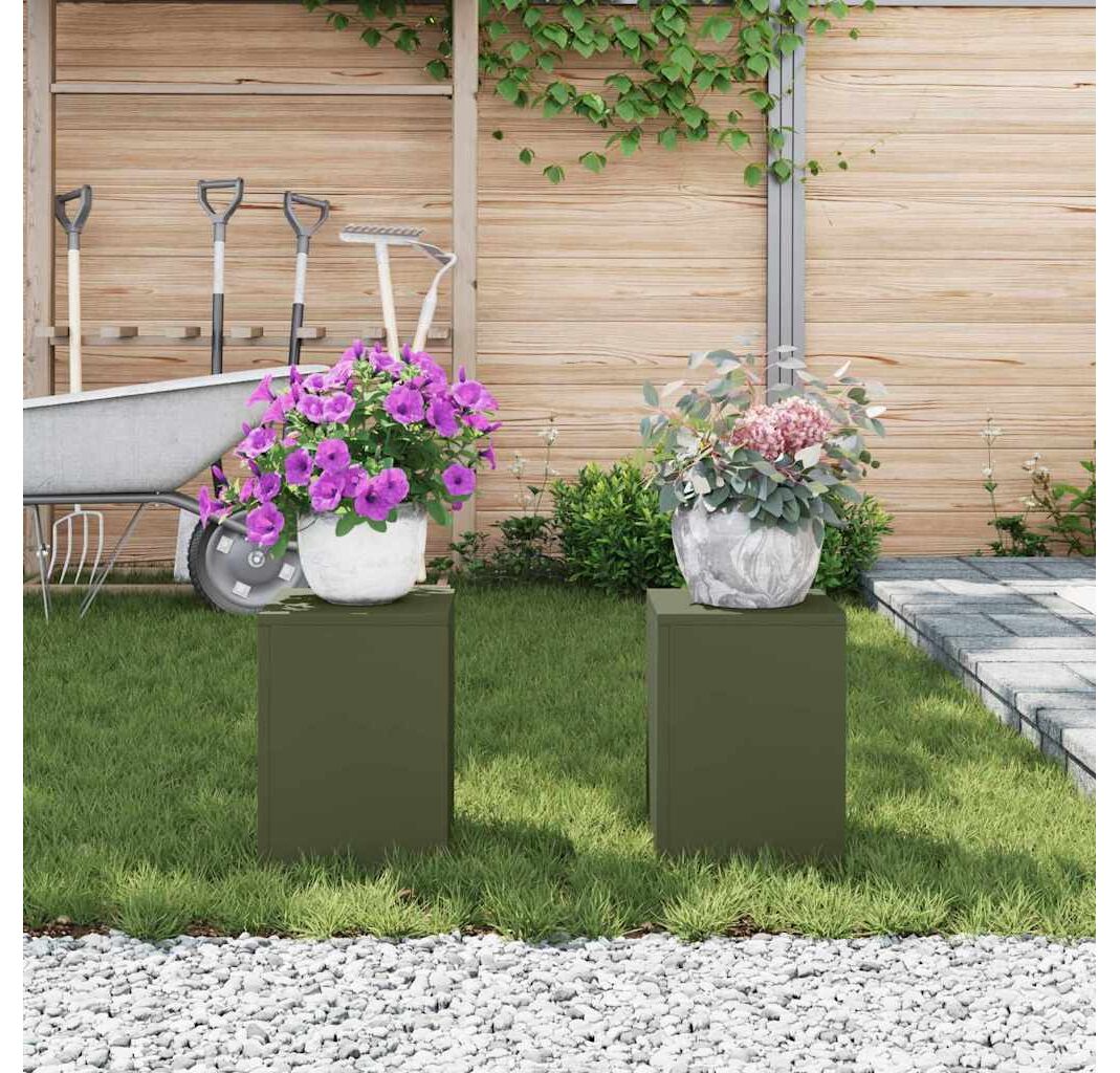 Acest set de Suporturi pentru Plante Exterioare vidaXL îmbină utilitatea modernă cu un aspect elegant, gata să îmbunătățească grădina ta. Fabricate din oțel robust cu un finisaj verde măslinie frumos, aceste vase adaugă un strop de clasă și oferă un adăpost solid pentru plantele tale.