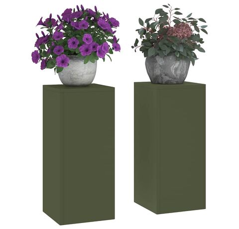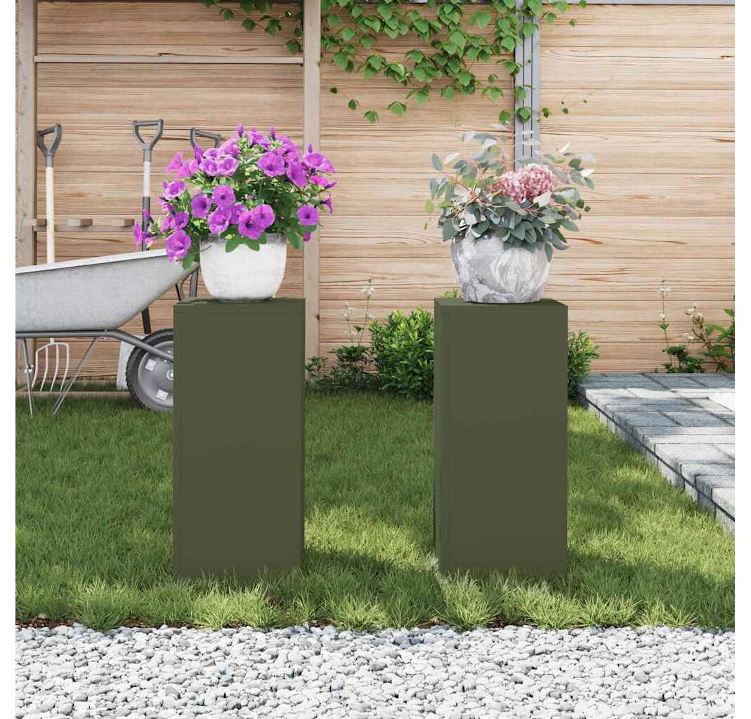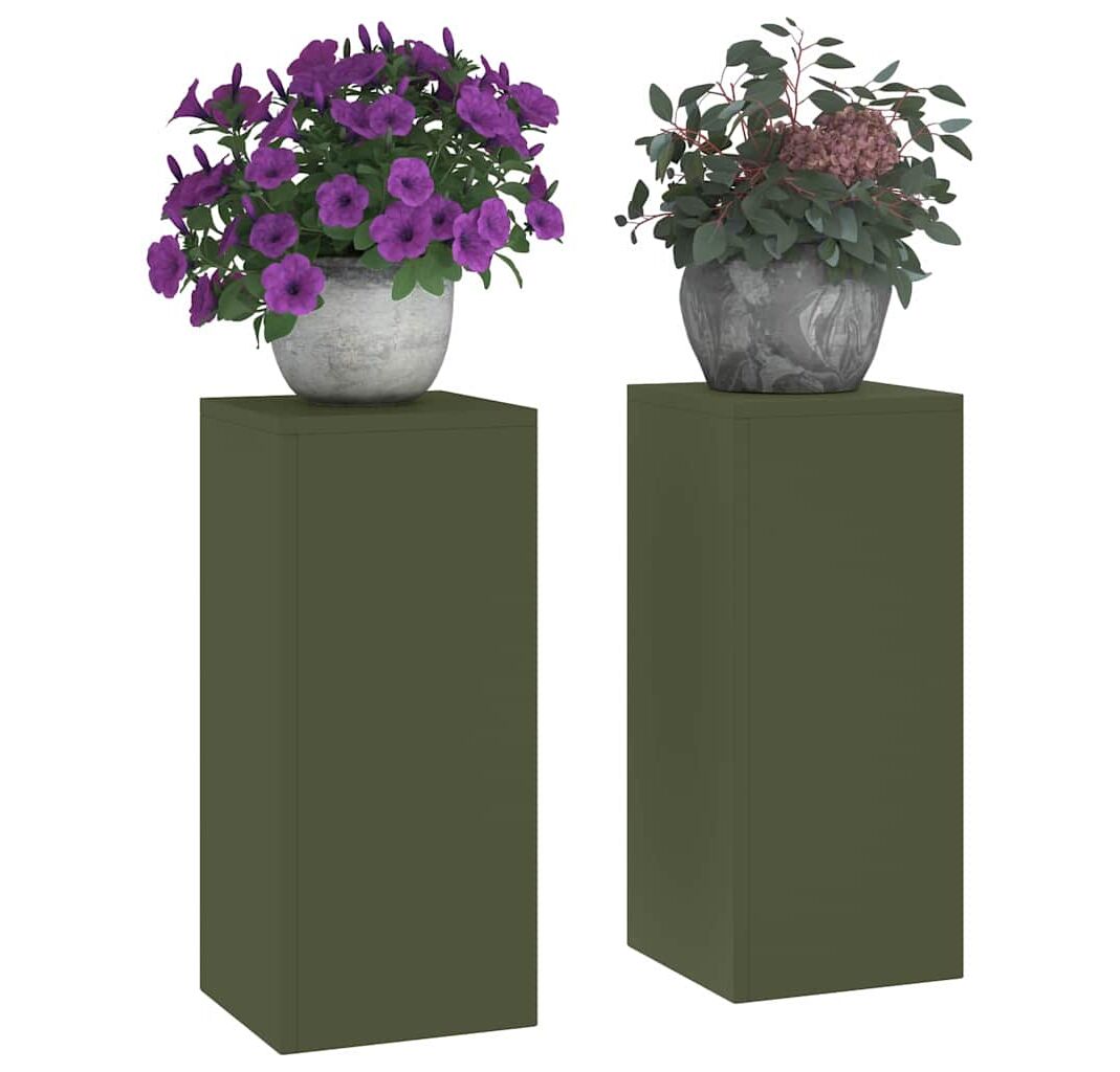 Suporturi plante pilon exterior 2 buc. oliv 24x24x55 cm oțel