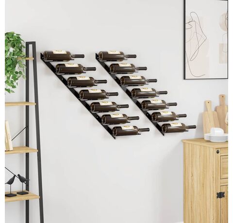 Suporturi sticle de vin de perete 14 sticle 2 buc. negru metal