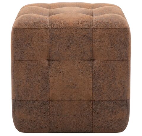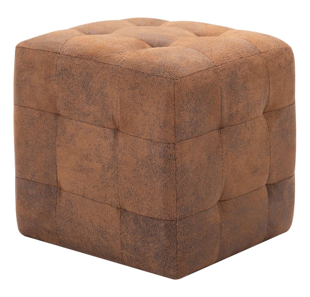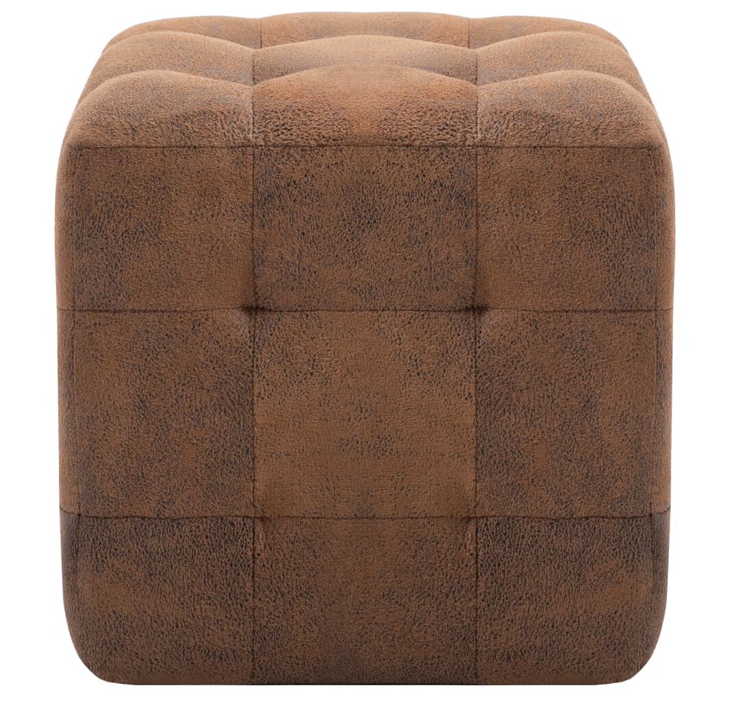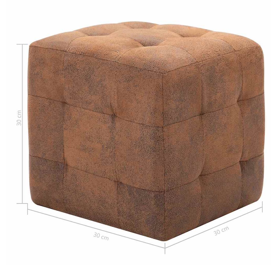 Taburet, 2 buc., maro, 30x30x30 cm, piele întoarsă ecologică