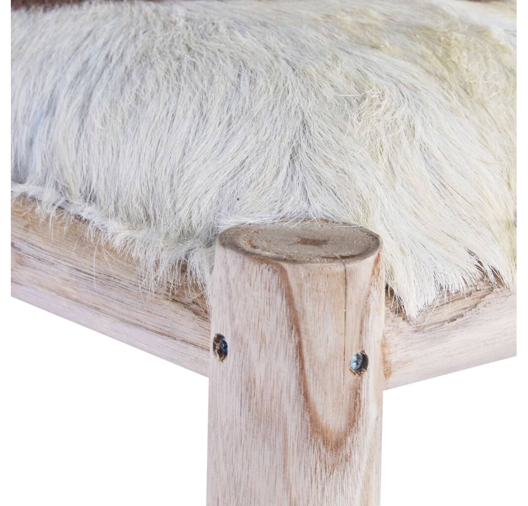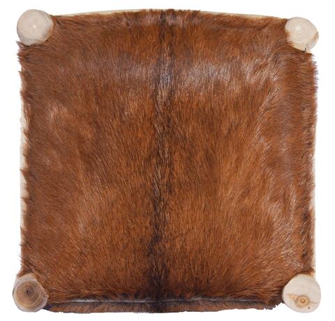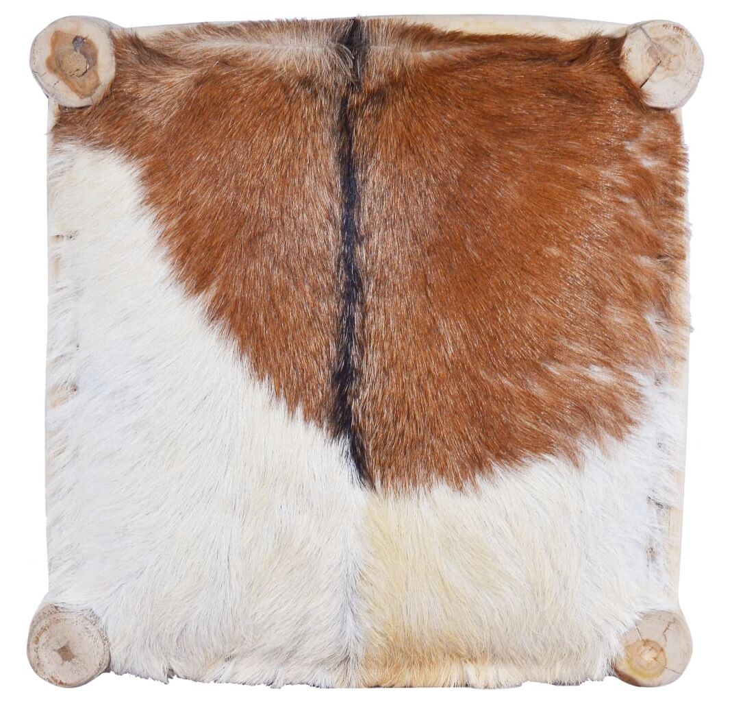 Acest taburet de bar din piele de capră autentică are un design unic, atrăgător, fiind menit să adauge o notă de farmec rustic restaurantelor sau barurilor, și chiar sufrageriei sau camerei de zi de acasă.