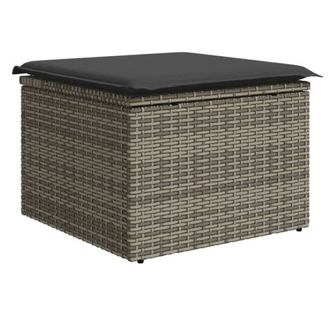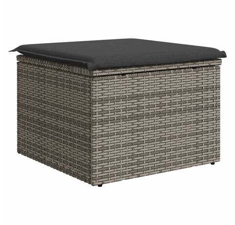 Taburet de grădină cu pernă, gri, 55x55x37 cm, poliratan