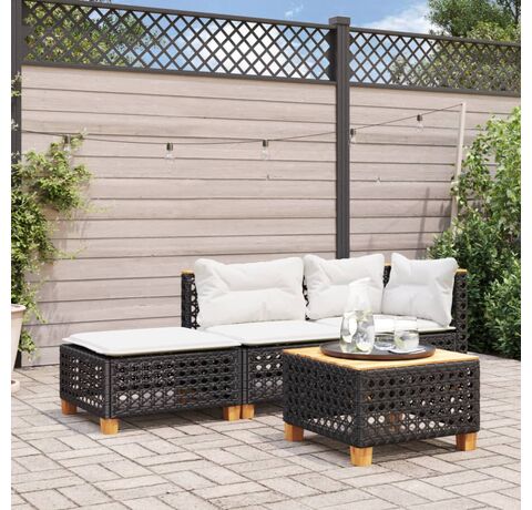 - Material: Ratan PE, oțel vopsit electrostatic, lemn masiv de acacia cu finisaj natural de ulei