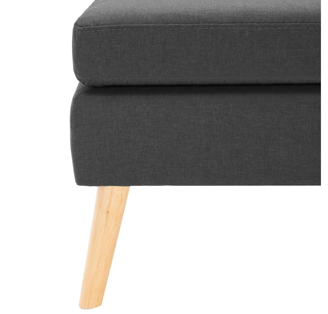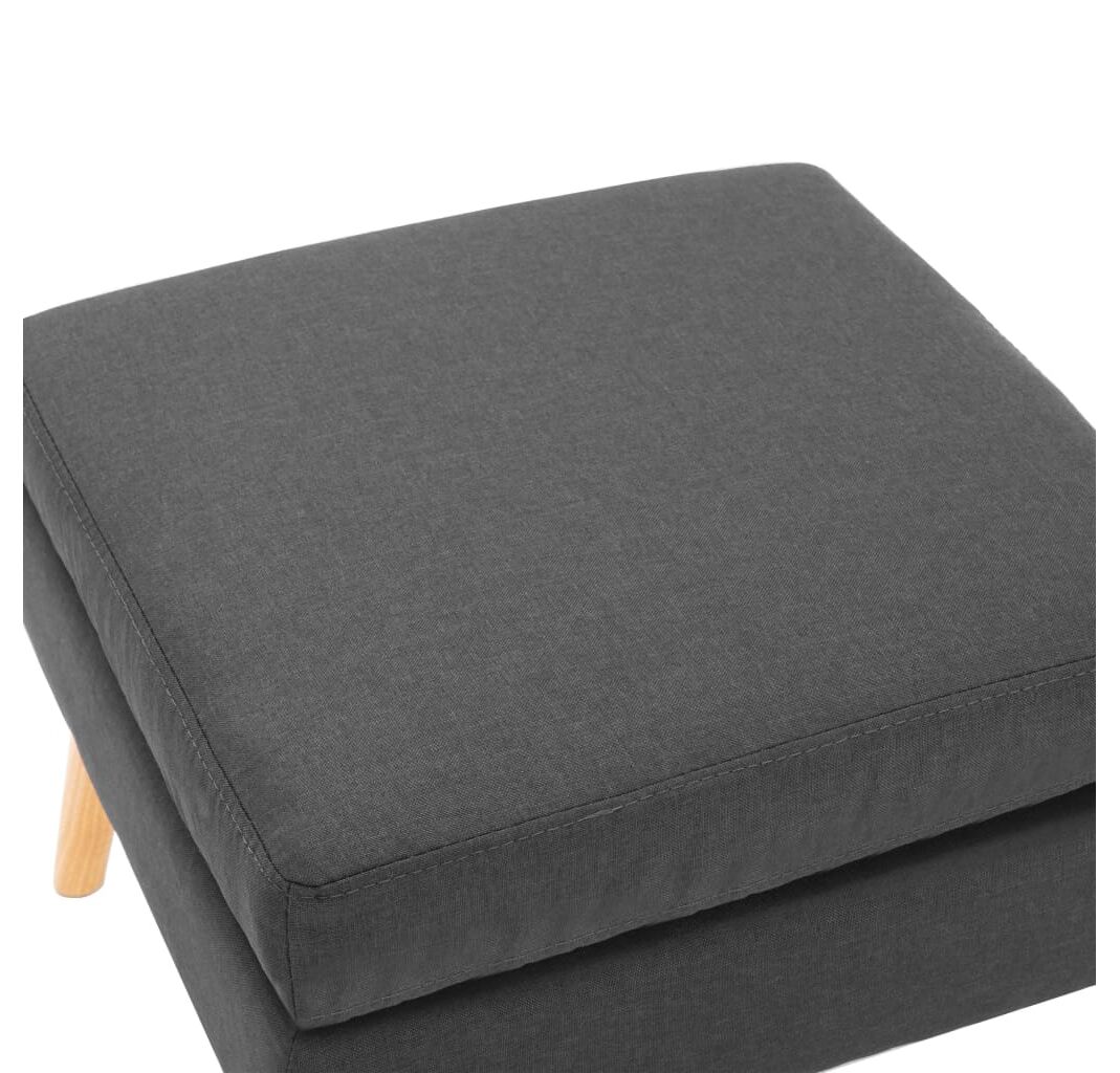 Acest taburet este tapițat cu un material textil moale la atingere și are pernă căptușită gros, oferind un spațiu confortabil pentru relaxare. Cadrul din lemn oferă sprijin și stabilitate pentru întreaga construcție.
