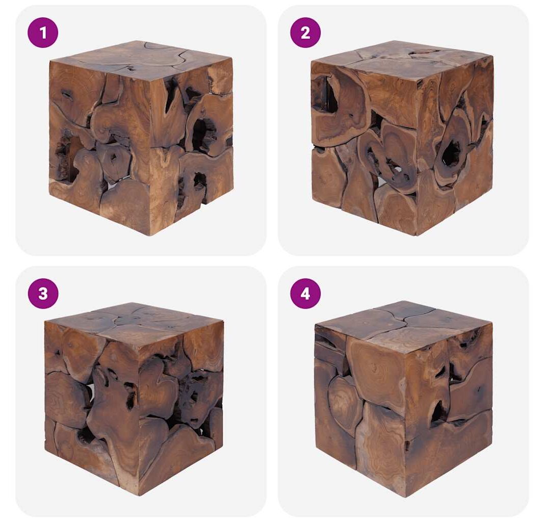 Notă importantă: Deoarece lemnul este un produs natural, culorile, texturile și formele variază de la piesă la piesă, astfel că fiecare taburet este unic; livrarea este aleatorie.