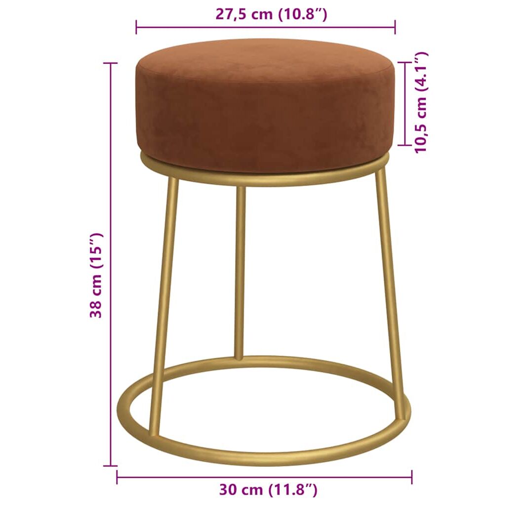 Tapițat în catifea moale, acest scaun rotund este clasic și economisește spațiu, oferind un confort optim. Baza deosebită, făcută din fier, adaugă frumusețea unică a scaunului și oferă o rezistență ridicată. Acest taburet este o completare perfectă pentru hol și camera de zi, oferind un aspect de lux și eleganță casei dvs.
