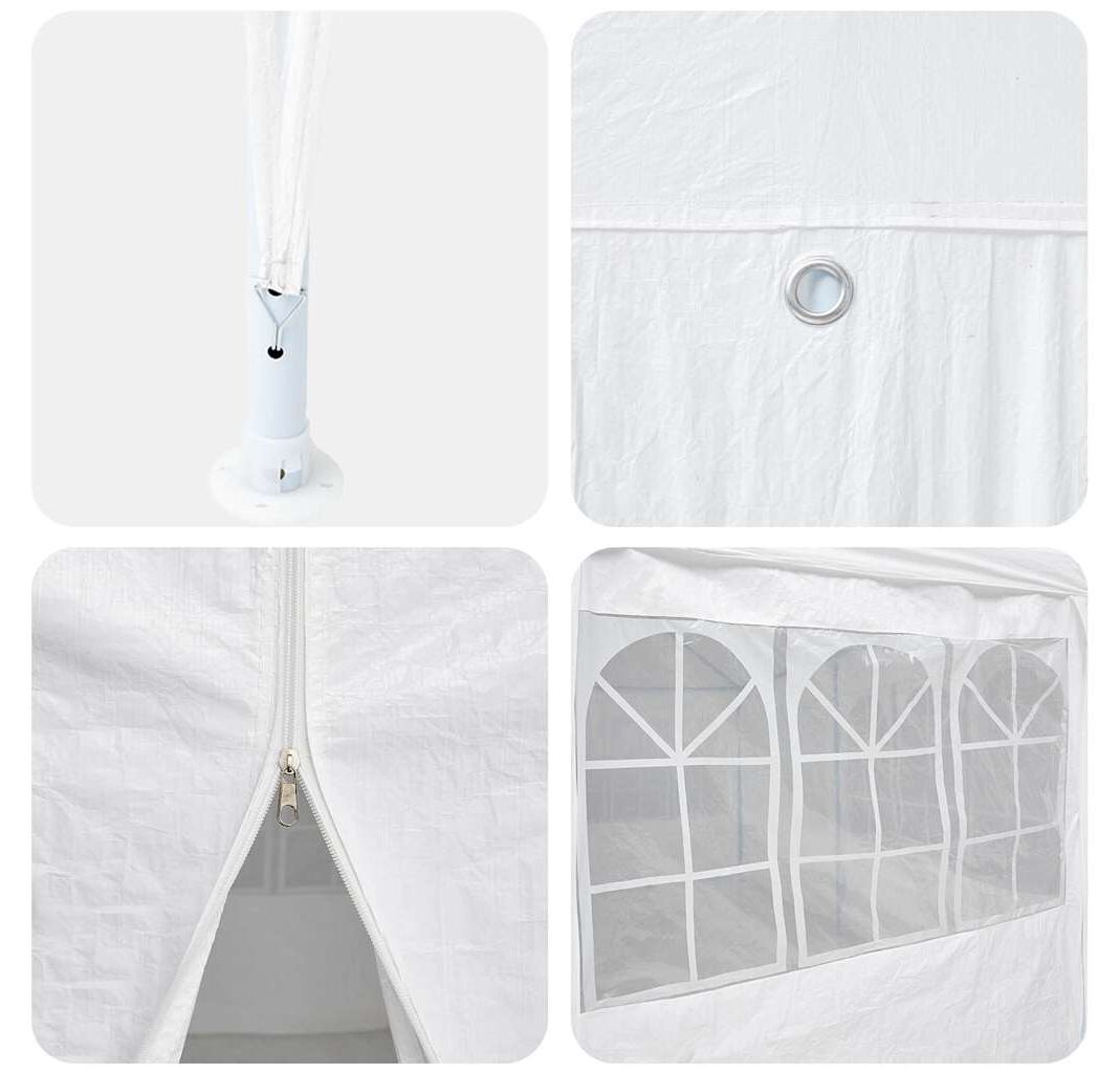 Cortul ăsta pentru petreceri e perfect pentru orice petrecere în aer liber, oferind un adăpost generos care se potrivește confortabil pentru 30 de persoane. Finisajul alb și designul practic transformă orice balcon, terasă sau grădină într-un loc super pentru reuniuni, bufete sau sărbători.