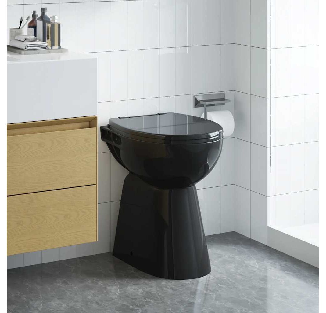 Toaletă fără bord 7 cm înălțime suplimentară închidere ușoară ceramică neagră