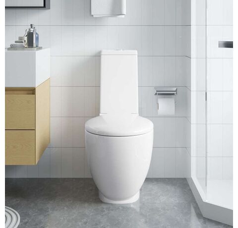 Această toaletă contemporană este proiectată cu linii minimaliste, care se vor potrivi oricărei băi. Acest vas WC din ceramică remarcabil este prevăzut cu două piese cuplate strâns, cuvă și rezervor.