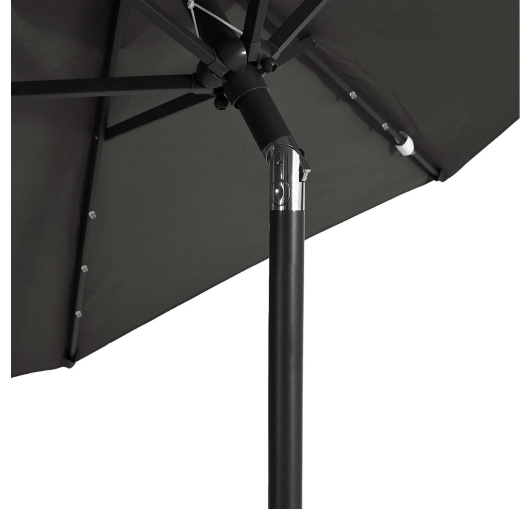 • Lumini LED strălucitoare: Becurile LED integrate ale umbrelei luminează spațiul dvs. de locuit în aer liber și creează o ambianță confortabilă și romantică atunci când soarele apune.