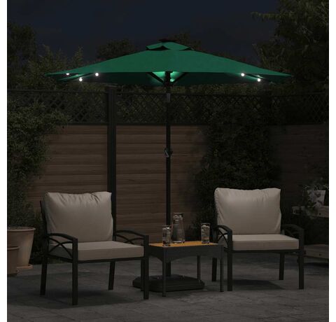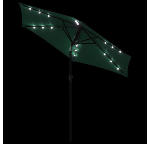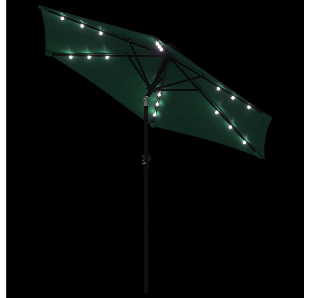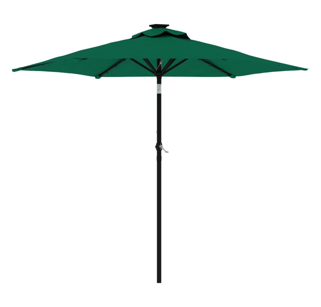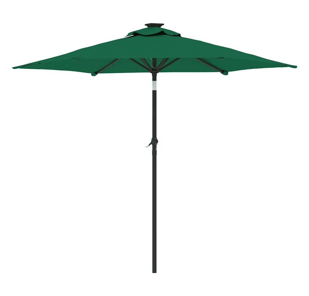 Umbrelă soare de grădină stâlp din oțel/LED verde 225x225x212cm