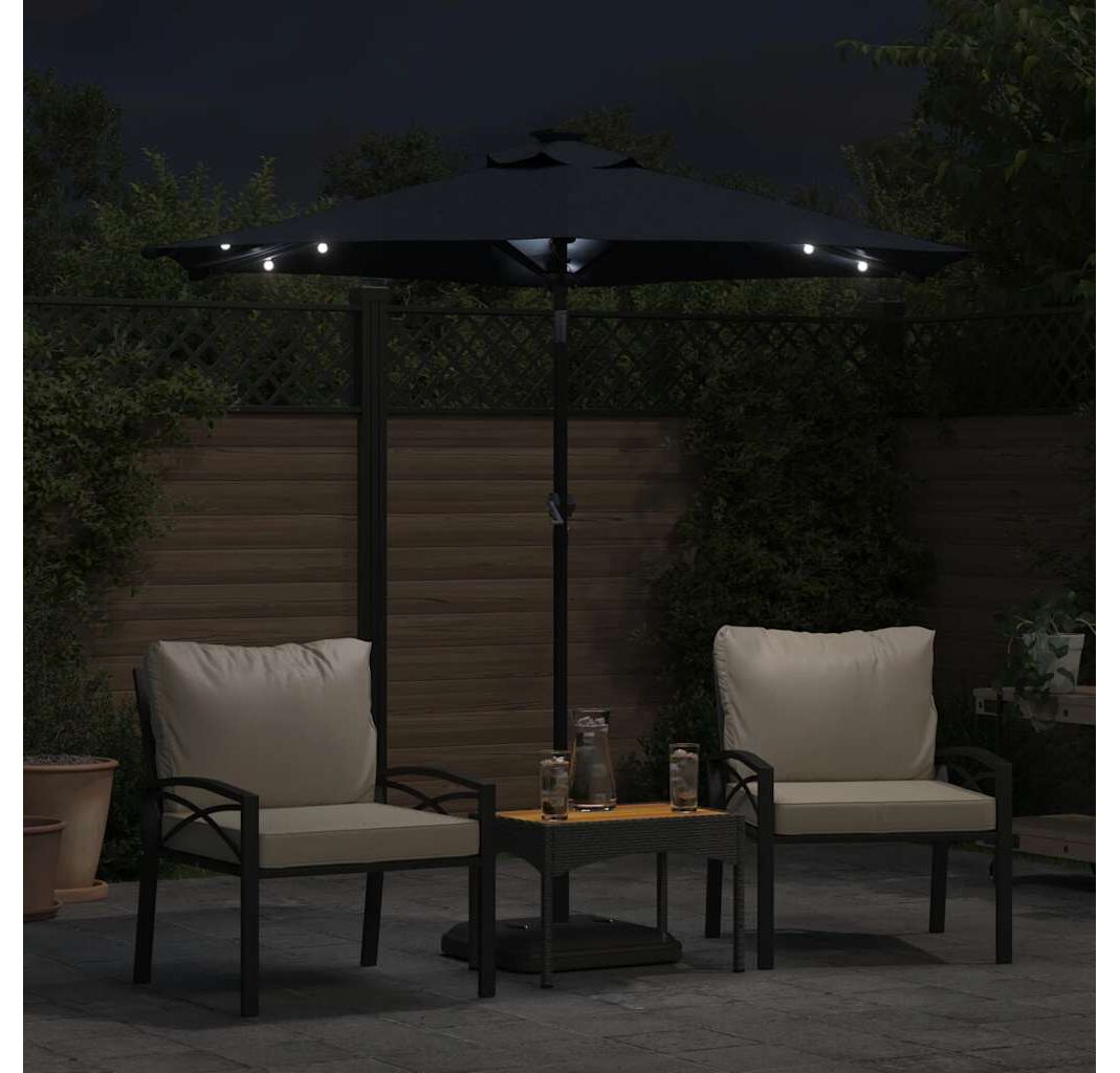 - Lumini LED strălucitoare: Becurile LED integrate ale umbrelei luminează spațiul dvs. de locuit în aer liber și creează o ambianță confortabilă și romantică atunci când soarele apune.