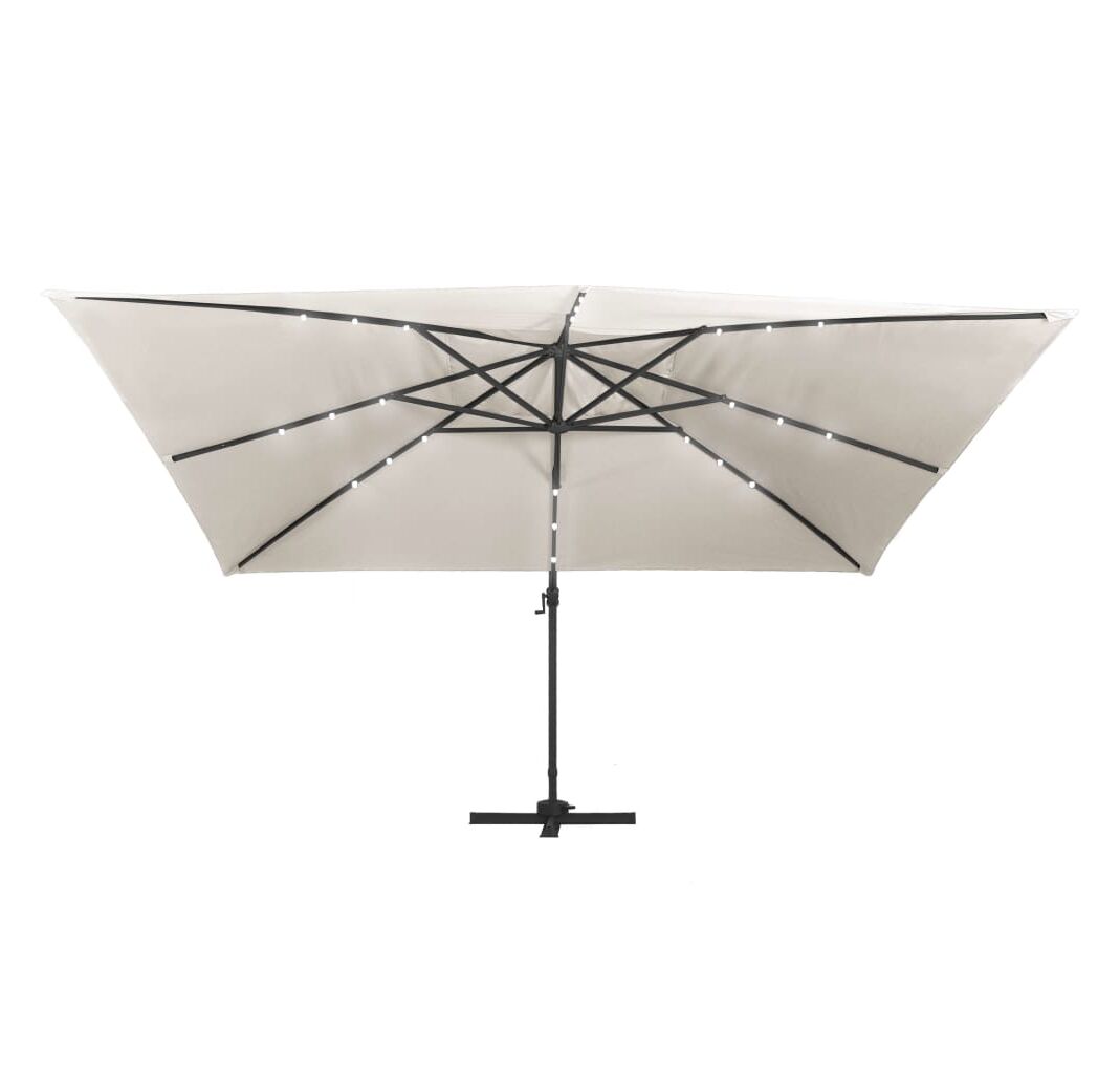 Umbrelă în consolă cu LED, stâlp din aluminiu nisipiu 400x300cm