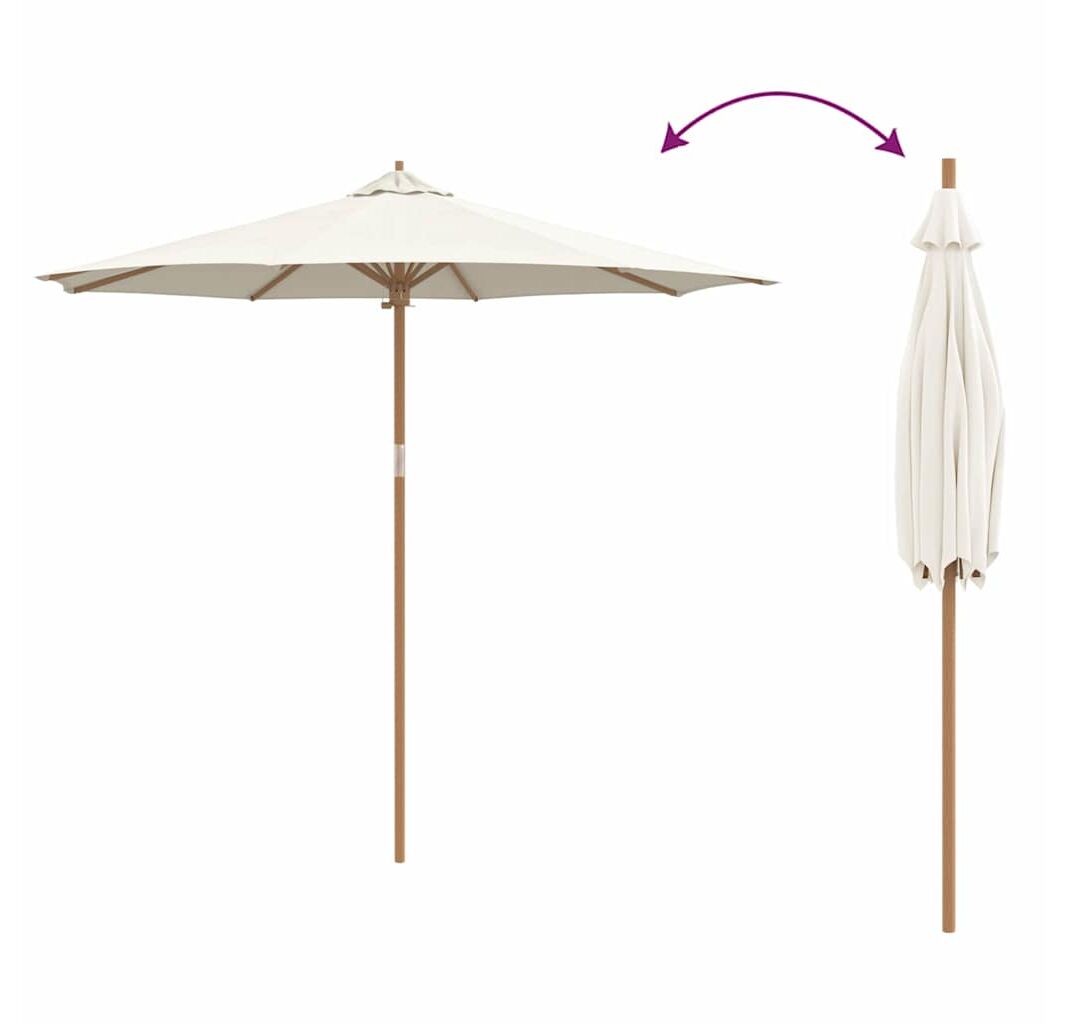 Acest parasol mare de grădină e soluția perfectă pentru umbră în aer liber, ideală pentru terase și balcoane. Designul său minimalist și culoarea crem alb se potrivesc perfect, oferindu-ți locul perfect pentru a scăpa de soare în timpul întâlnirilor sau pentru momentele leneșe.