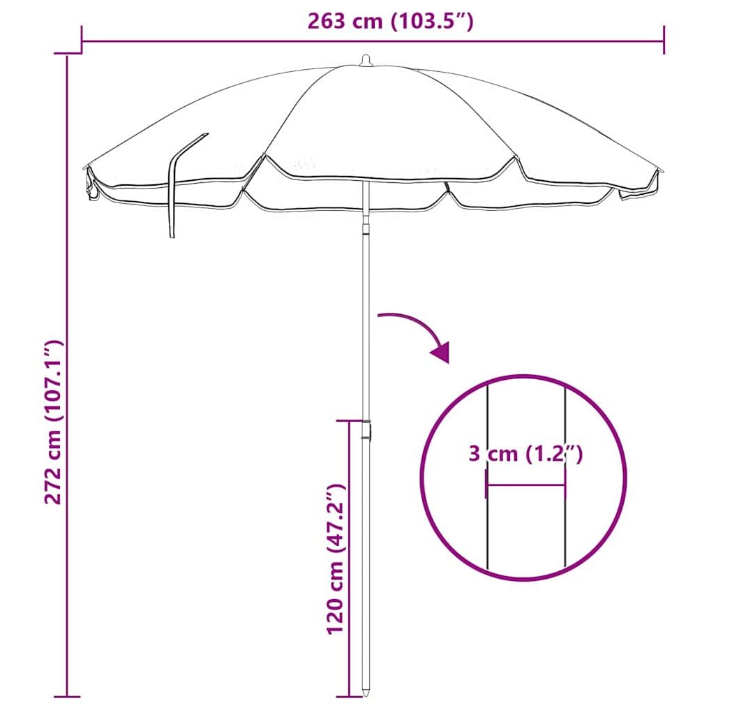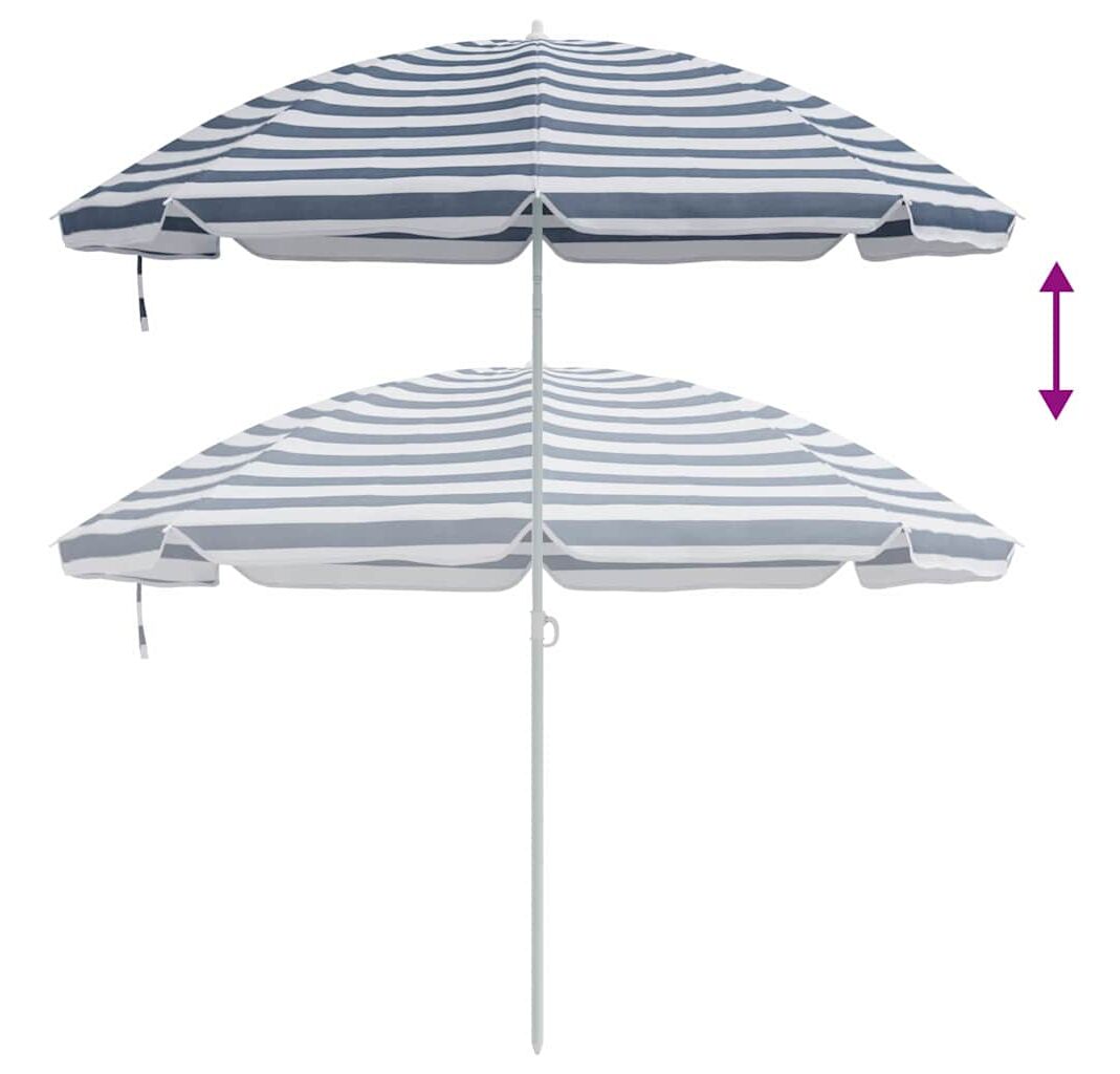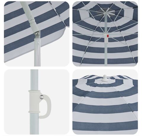 • Estetică Stylish: Culorile alb și albastru atractive, împreună cu textura netedă, fac din umbrela asta o adiție frumoasă la orice loc de plajă sau exterior.