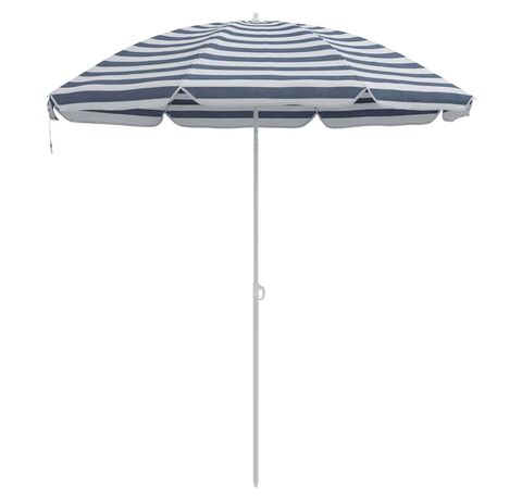 Umbrela asta albă și albastră îți aduce o protecție esențială împotriva soarelui pe timp de vară, dând o vibrație super peisajului tău de plajă și întâlnirilor în aer liber. Designul chic cu dungi și construcția robustă o fac atât stilată, cât și funcțională, ideală pentru a-ți îmbunătăți aventura la plajă.