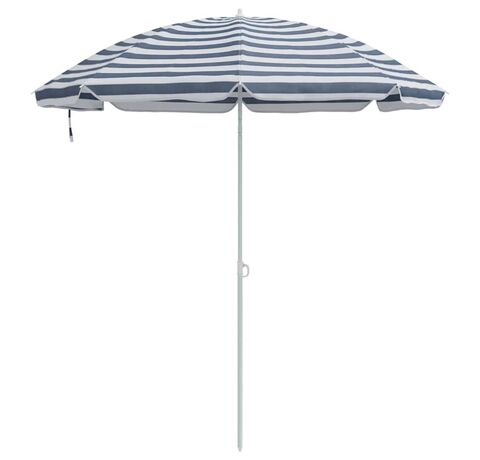 Umbrela asta albă și albastră îți aduce o protecție esențială împotriva soarelui pe timp de vară, dând o vibrație super peisajului tău de plajă și...