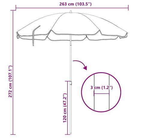Cantitatea minima pentru "Umbrela plajă, stâlp metalic, albastru & alb, 300 cm" este 1.