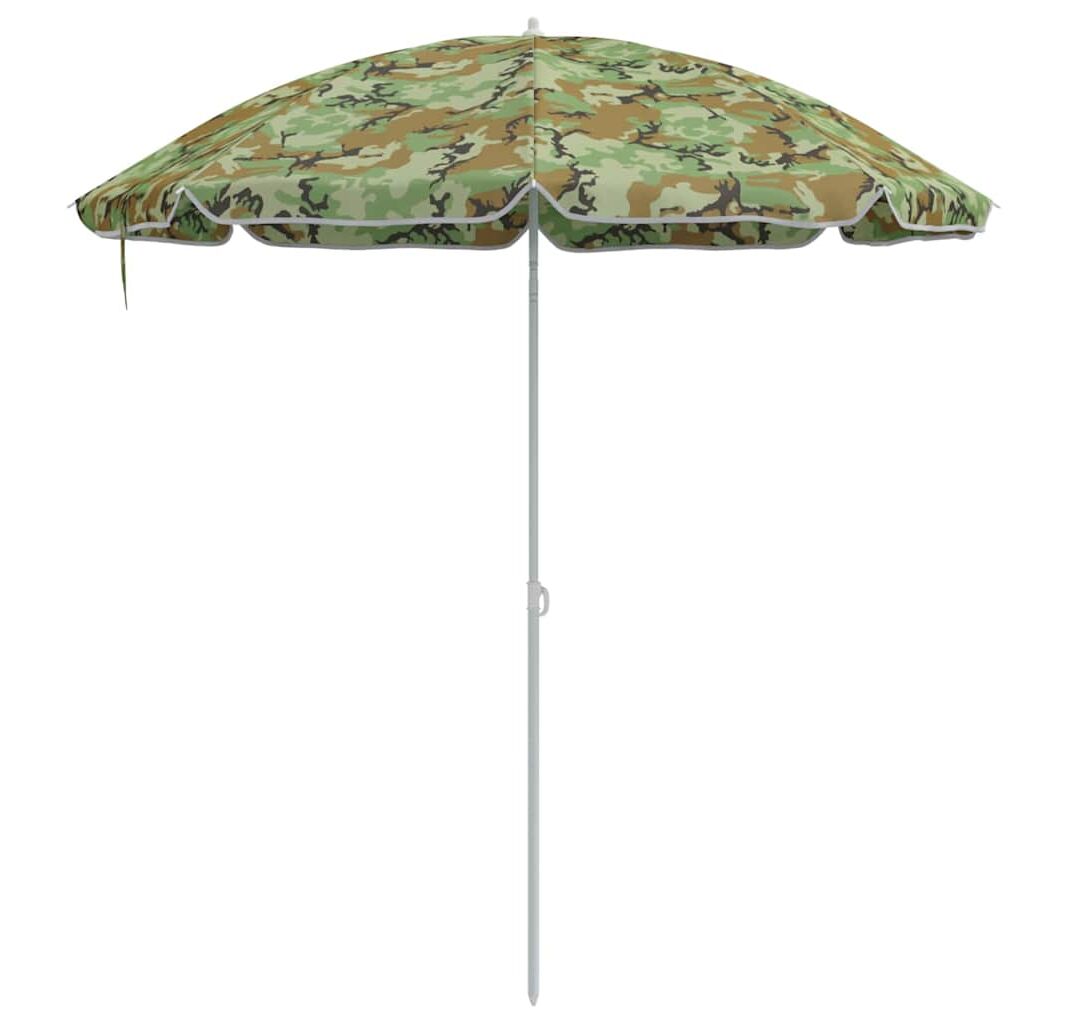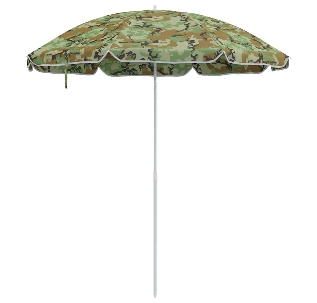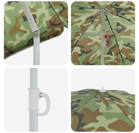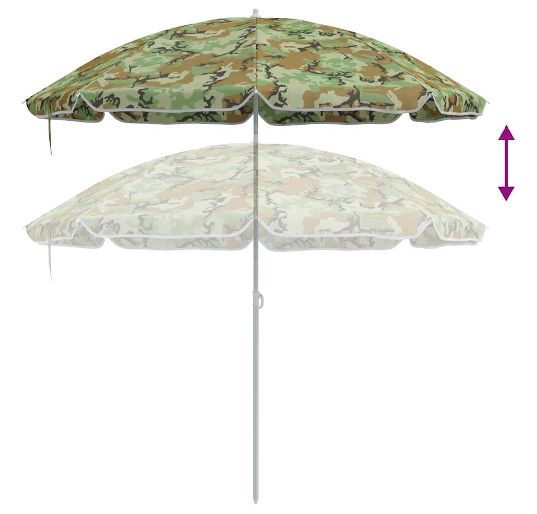 Această umbrelă mare de plajă cu camuflaj este partenerul perfect pentru distracțiile tale în aer liber, oferind protecție eficientă împotriva soarelui, dar și un aspect cool. Designul său vibrant de camuflaj nu doar că se potrivește cu natura, dar aduce și o notă vizuală grozavă aventurilor tale însorite.