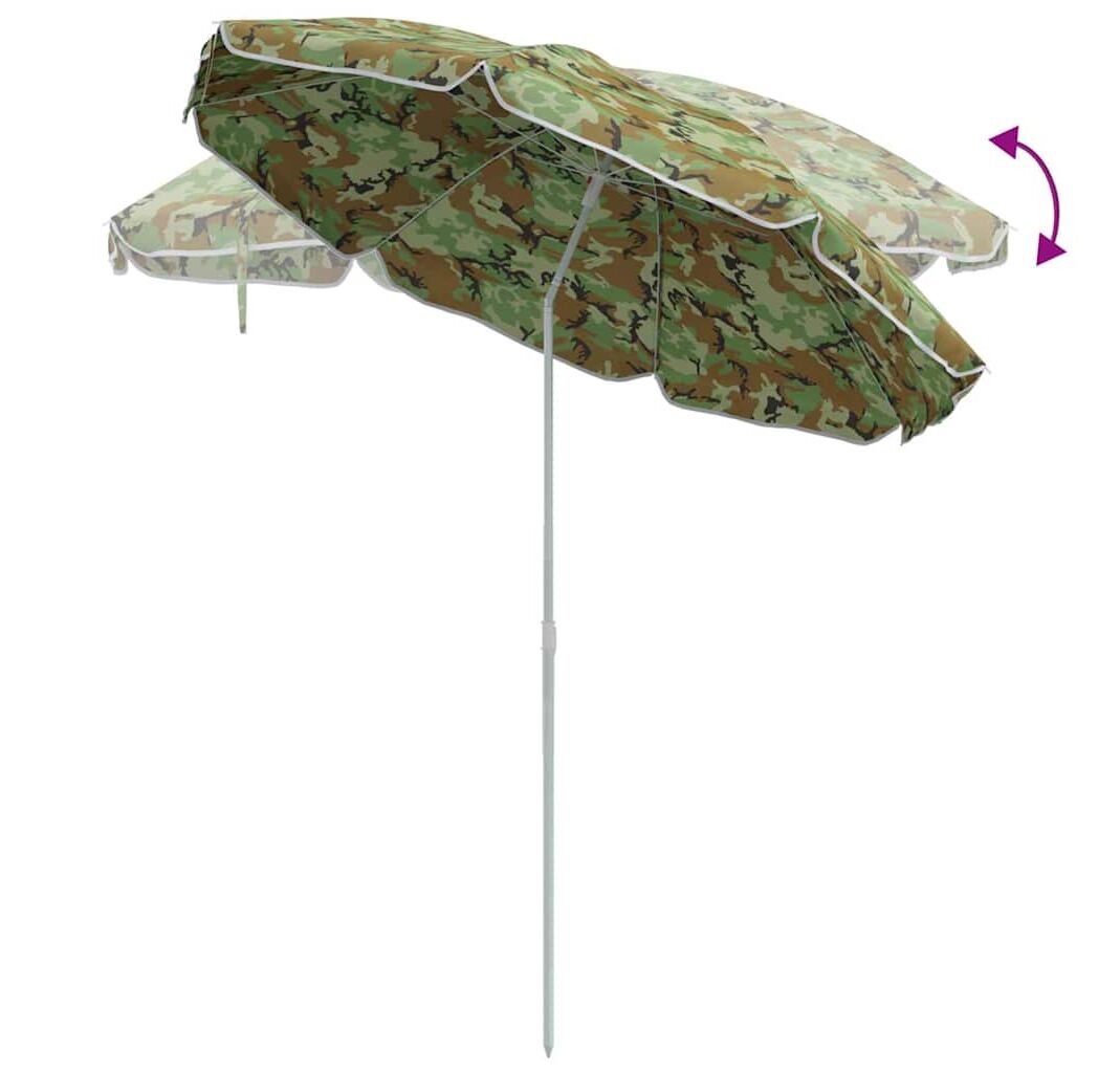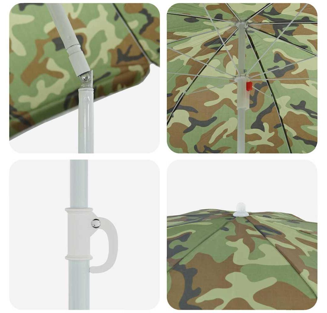 Umbra de plajă portabilă cu camuflaj e tot despre versatilitate. Arată bine și te protejează de soare, așa că te poți bucura de zi fără griji.