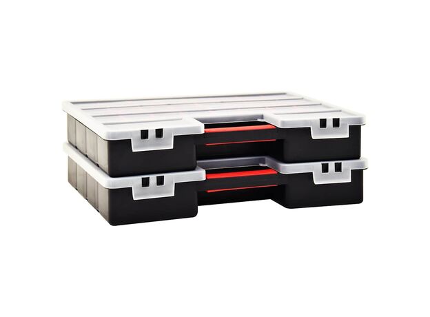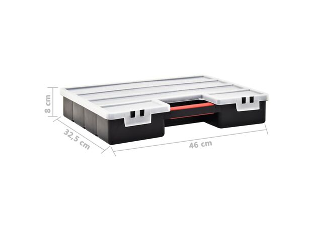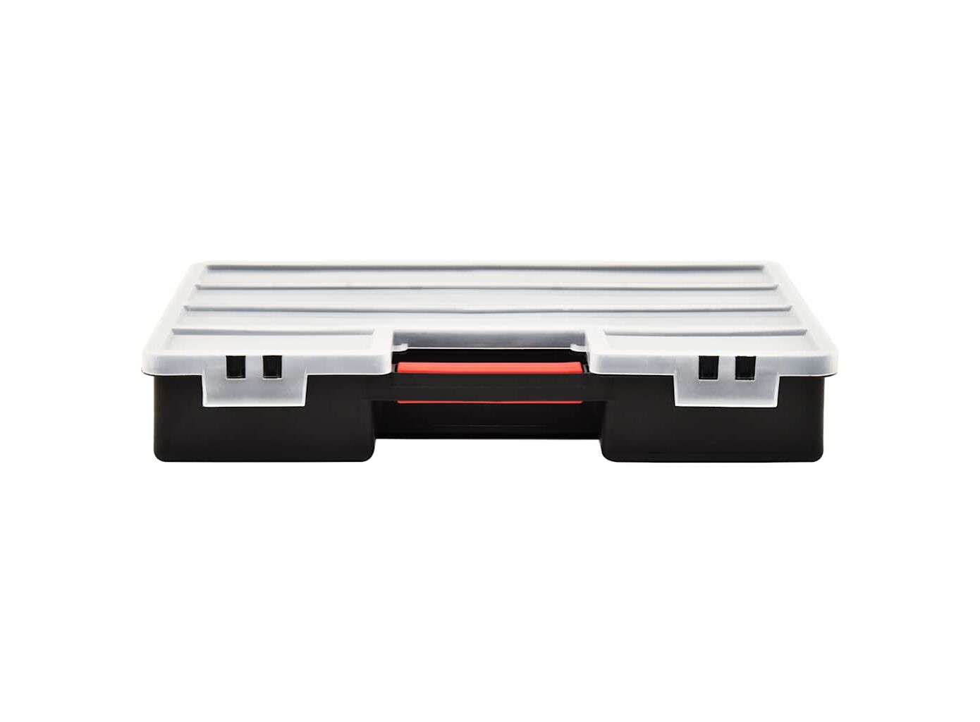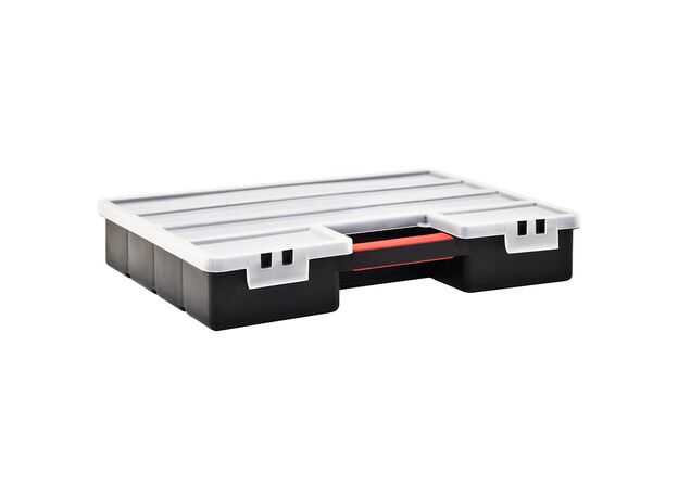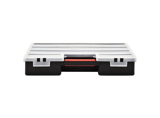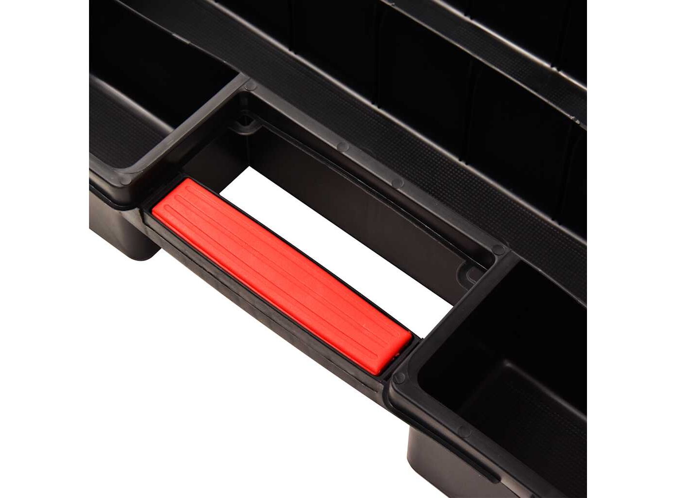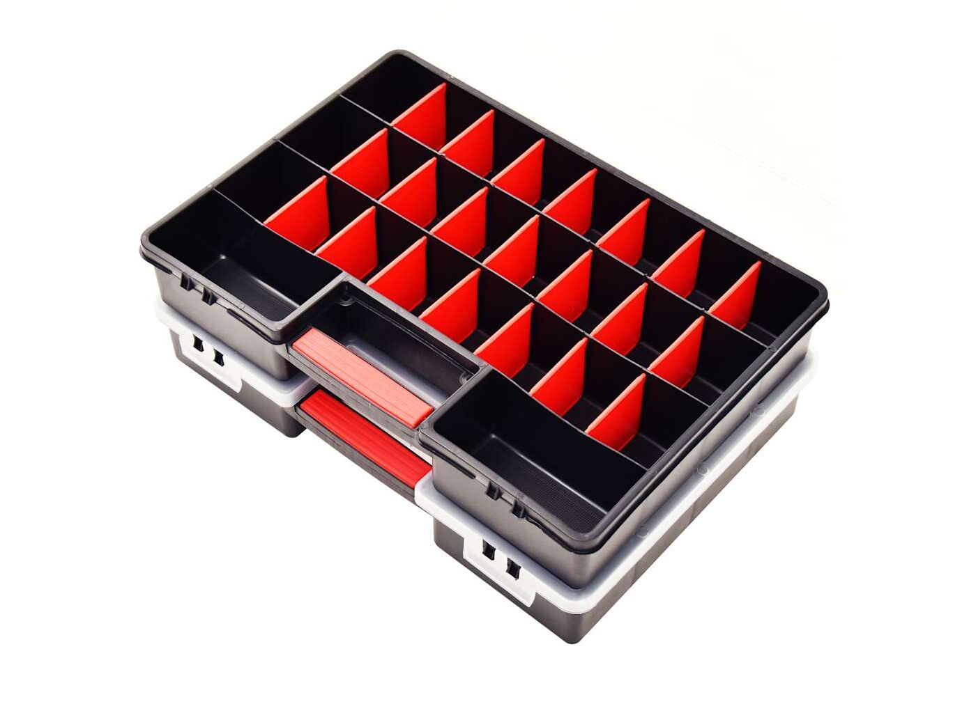 Acest organizator de scule practic va fi o soluție excelentă pentru persoanele care apreciază ordinea în timpul activităților de bricolaj și meșteșugărit, dar și pentru profesioniști, la locul de muncă. Datorită capacelor transparente, puteți recunoaște și găsi cu ușurință șuruburi, piulițe, cuie și alte piese mici. Dispunând de 21 separatoare reglabile, caseta de sortare poate fi împărțită în maximum 26 de compartimente, fiecare obiect găsindu-și locul potrivit. Mânerul ușor de utilizat vă permite să transportați conținutul acolo unde aveți nevoie.