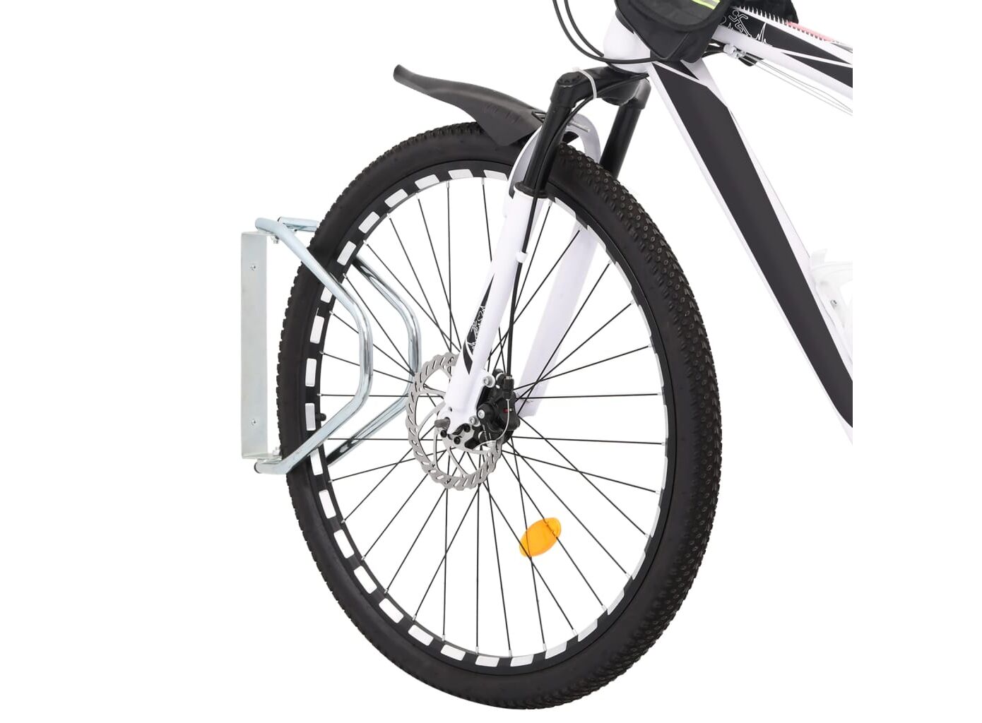 - Ușor de utilizat: Acest suport pentru biciclete poate fi fixat ușor și ferm pe perete cu șuruburi, iar designul său face posibilă, de asemenea, asigurarea bicicletei împotriva furtului prin atașarea unui lanț sau a unui inel de blocare.