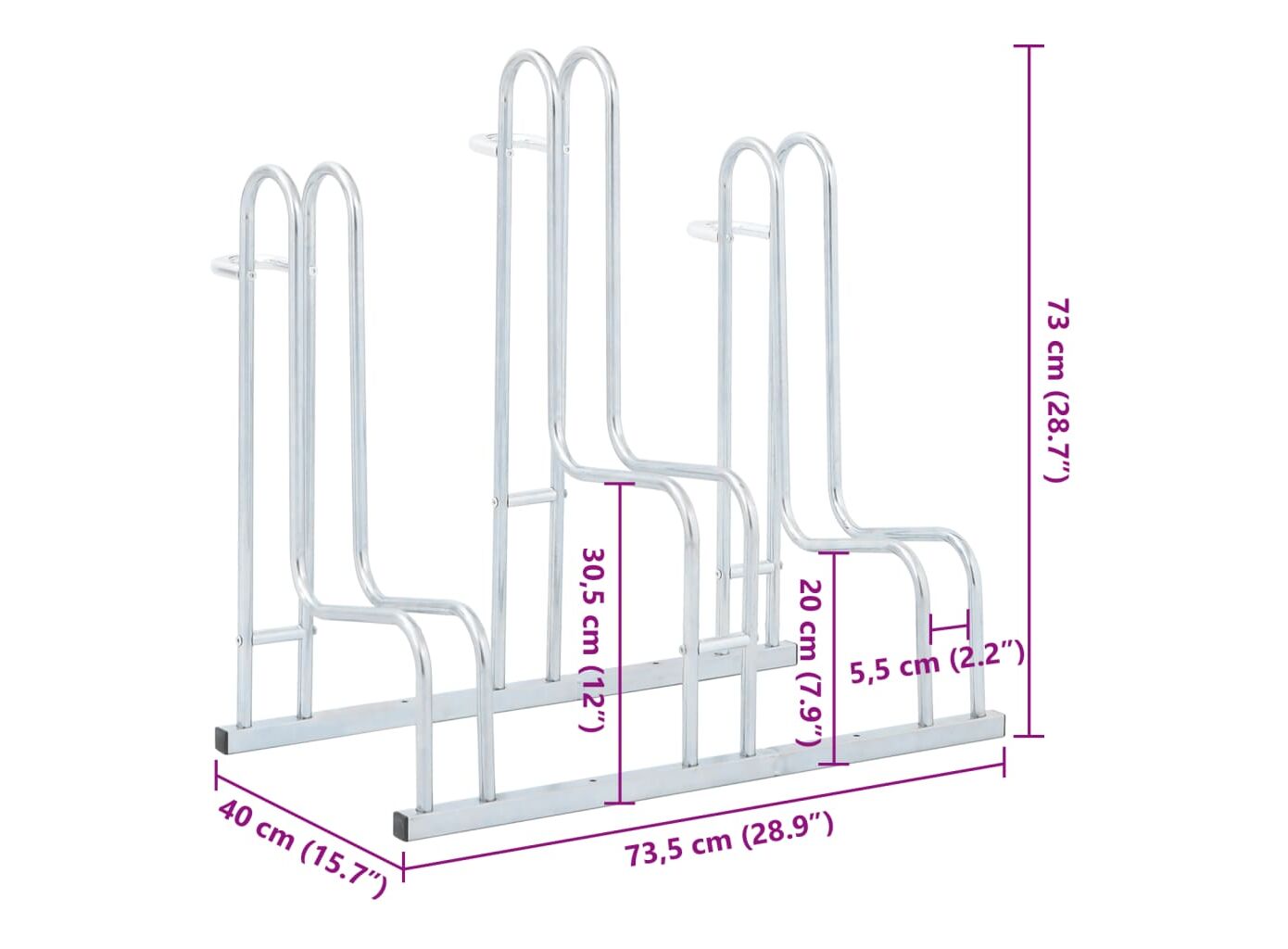 • Aplicații vaste: Suportul pentru biciclete este perfect pentru a găzdui mai multe biciclete cu lățimi de anvelope de până la 55 mm și este potrivit pentru utilizare în interior și în exterior, în diferite configurații, inclusiv în garaje, depozite, școli, magazine și multe altele.