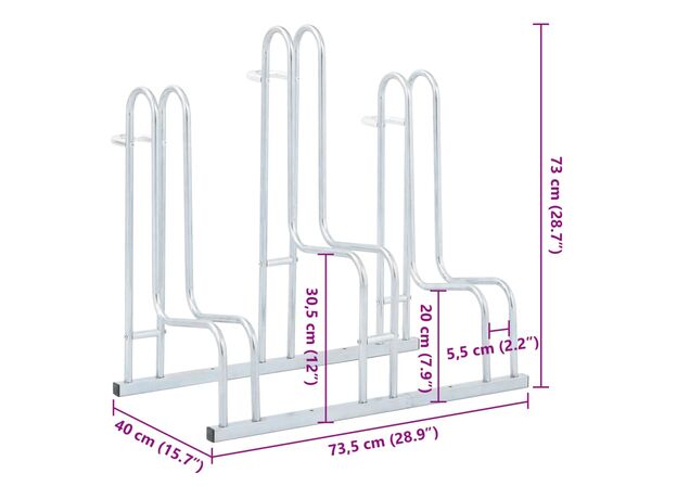 Suport de sine stătător pentru 3 biciclete, oțel galvanizat