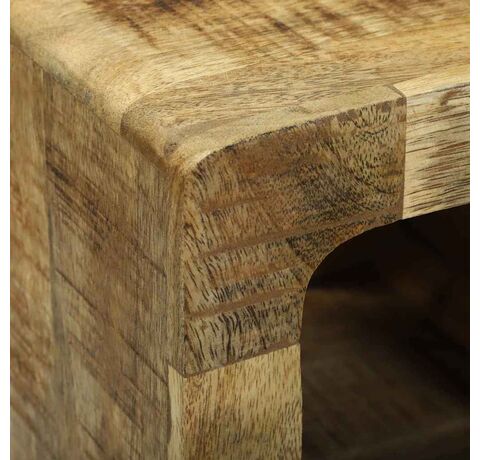 - Material Durabil: Făcute din lemn masiv de mango netratat, aceste mese de final sunt durabile, promițând să suporte ani de utilizare zilnică.