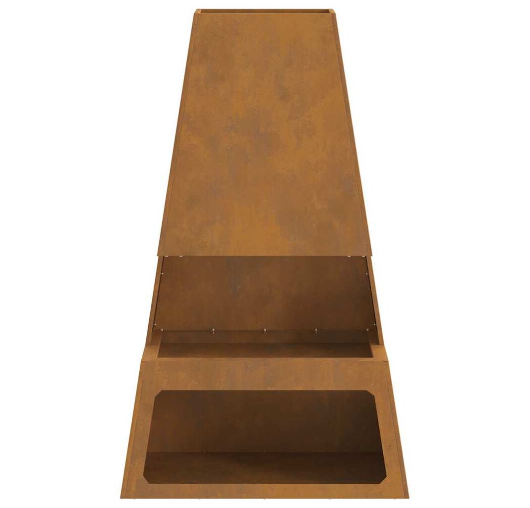Vatră de foc cu depozitare lemne, 60x35x100 cm, oțel corten