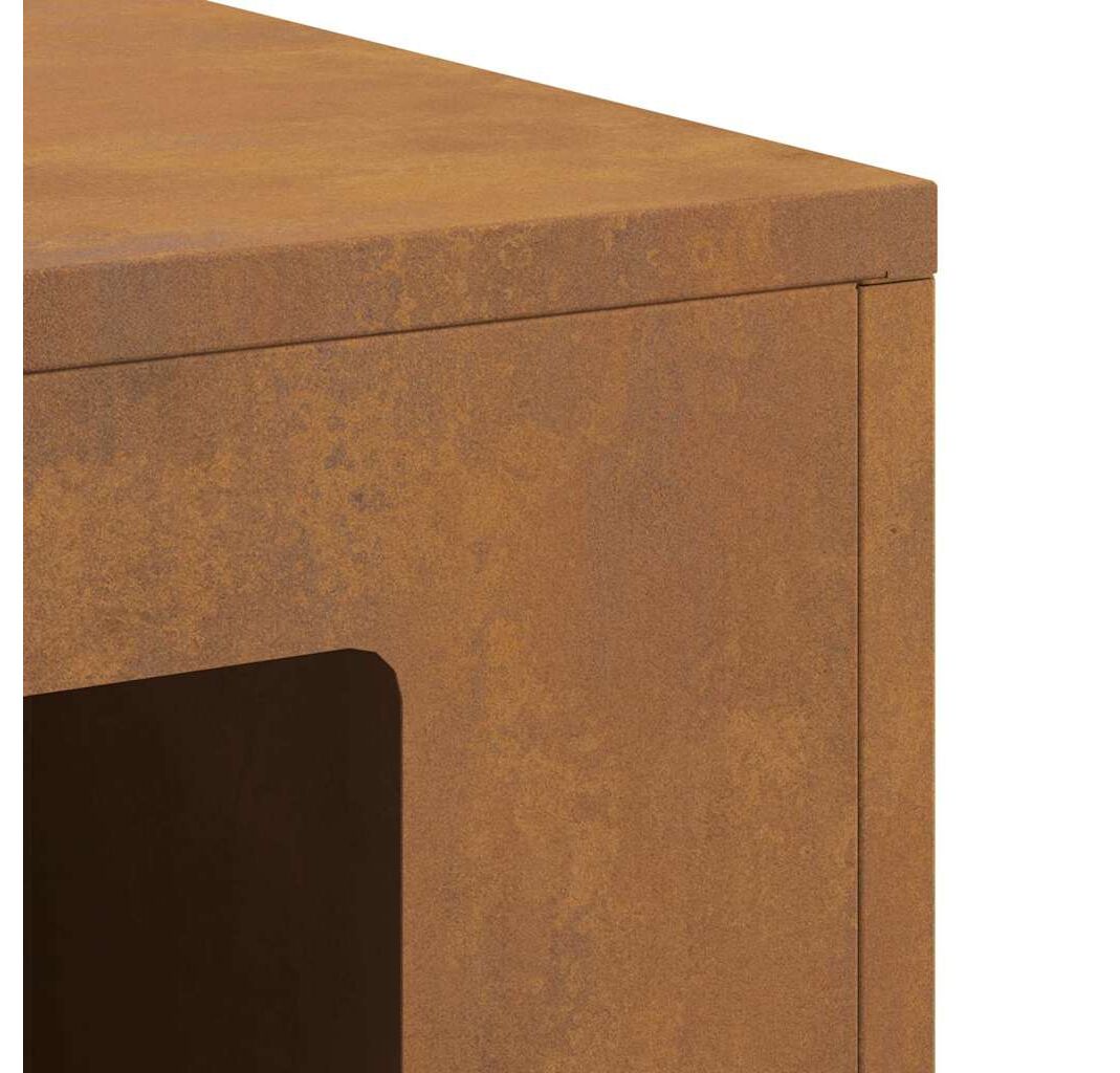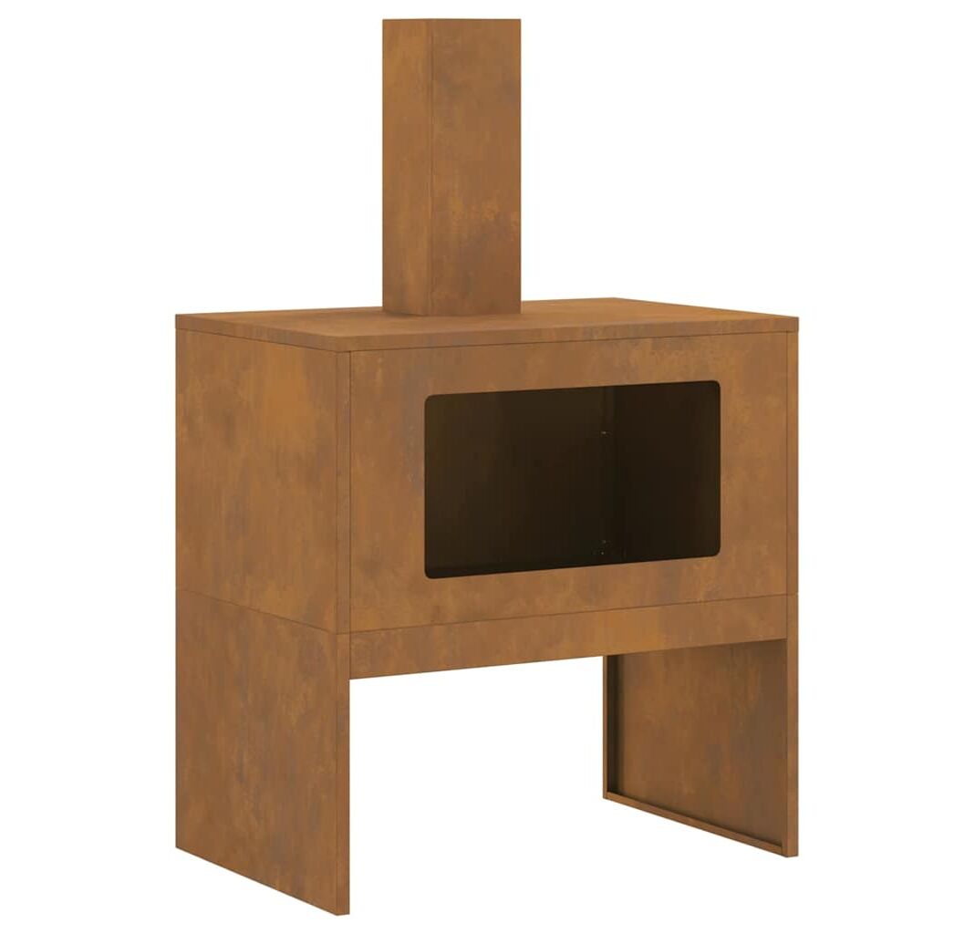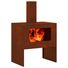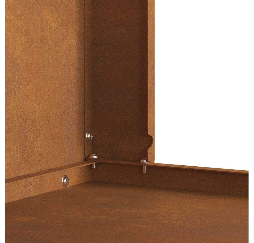 - Construcție durabilă: Focarul e făcut din oțel Corten tare, care rezistă bine la vreme, păstrându-și forma pentru un timp îndelungat în exterior.