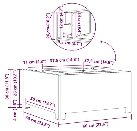 Vatră de foc, negru, pătrată, 60x60x30 cm, oțel