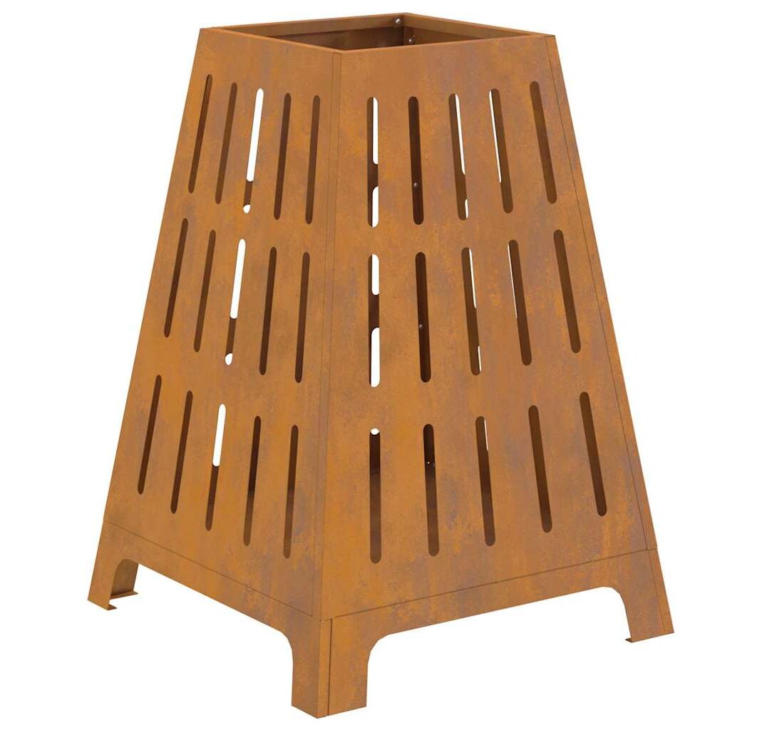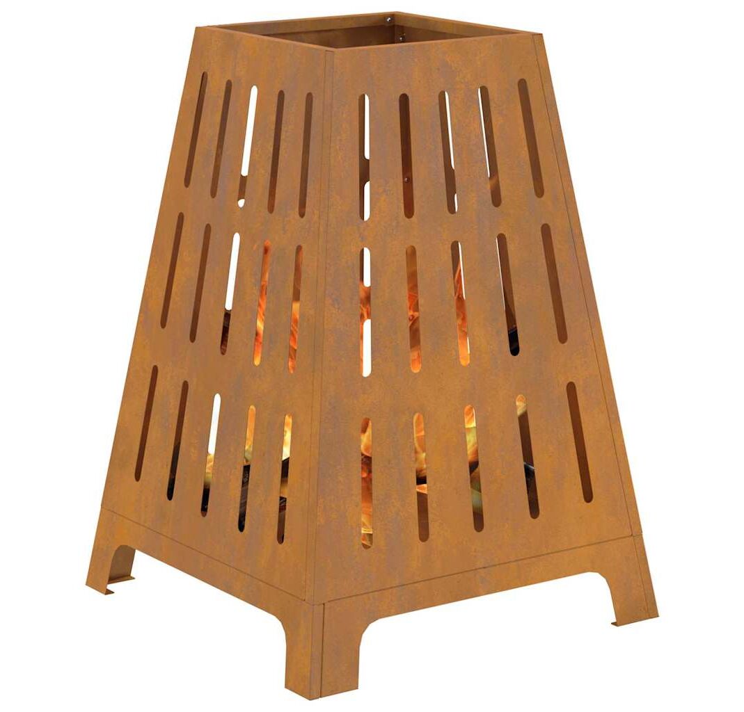 Vatră de foc pătrată, 50x50x70 cm, oțel corten