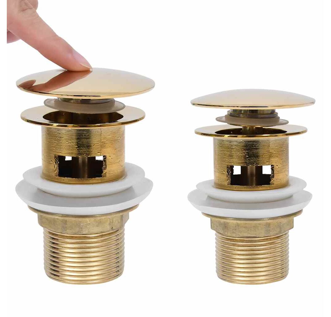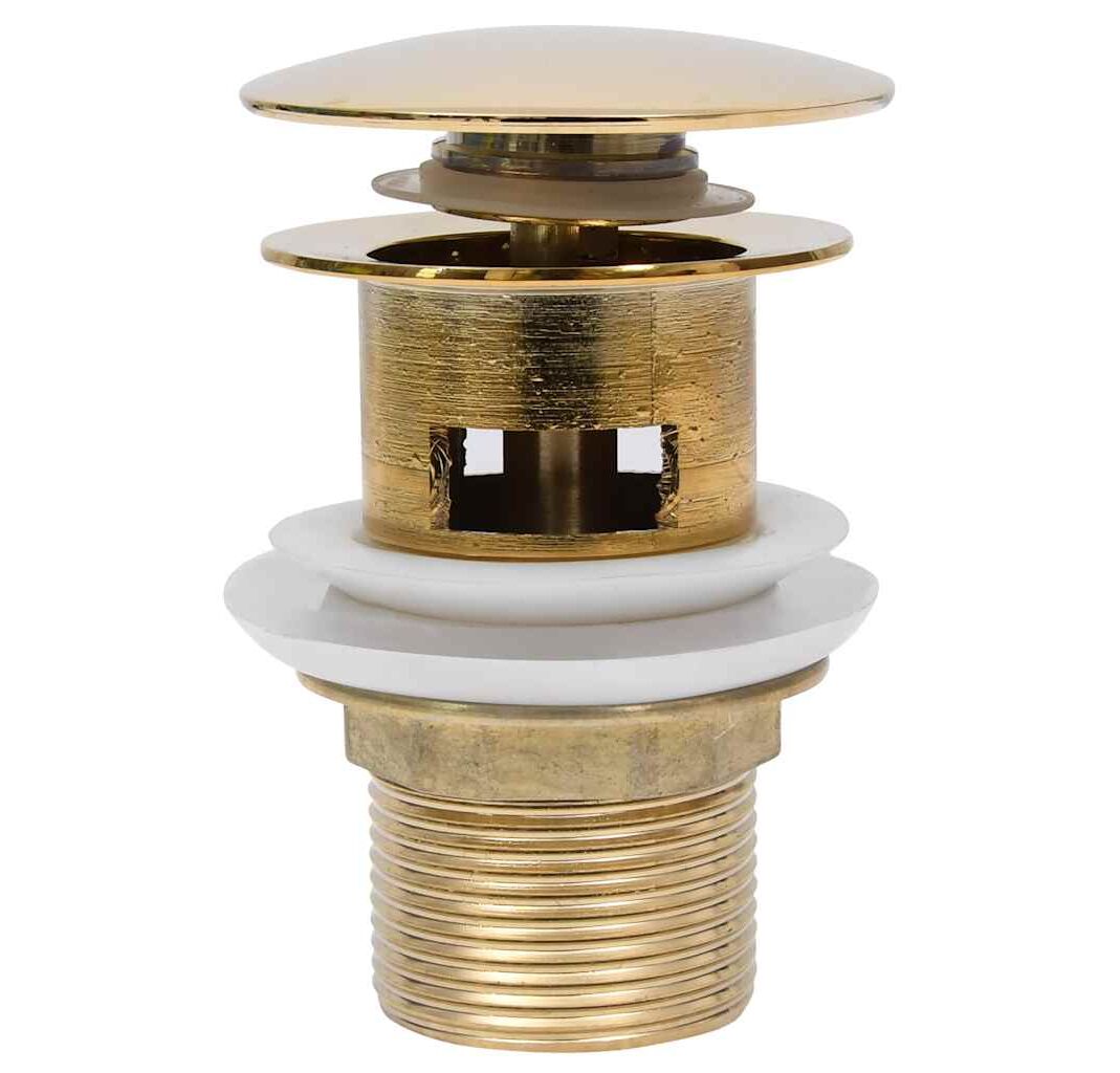 Ventil scurgere push, funcție de preaplin, auriu 6,4x6,4x9,1 cm