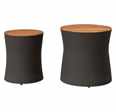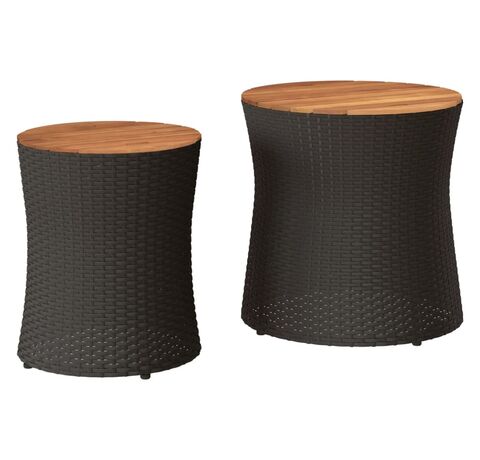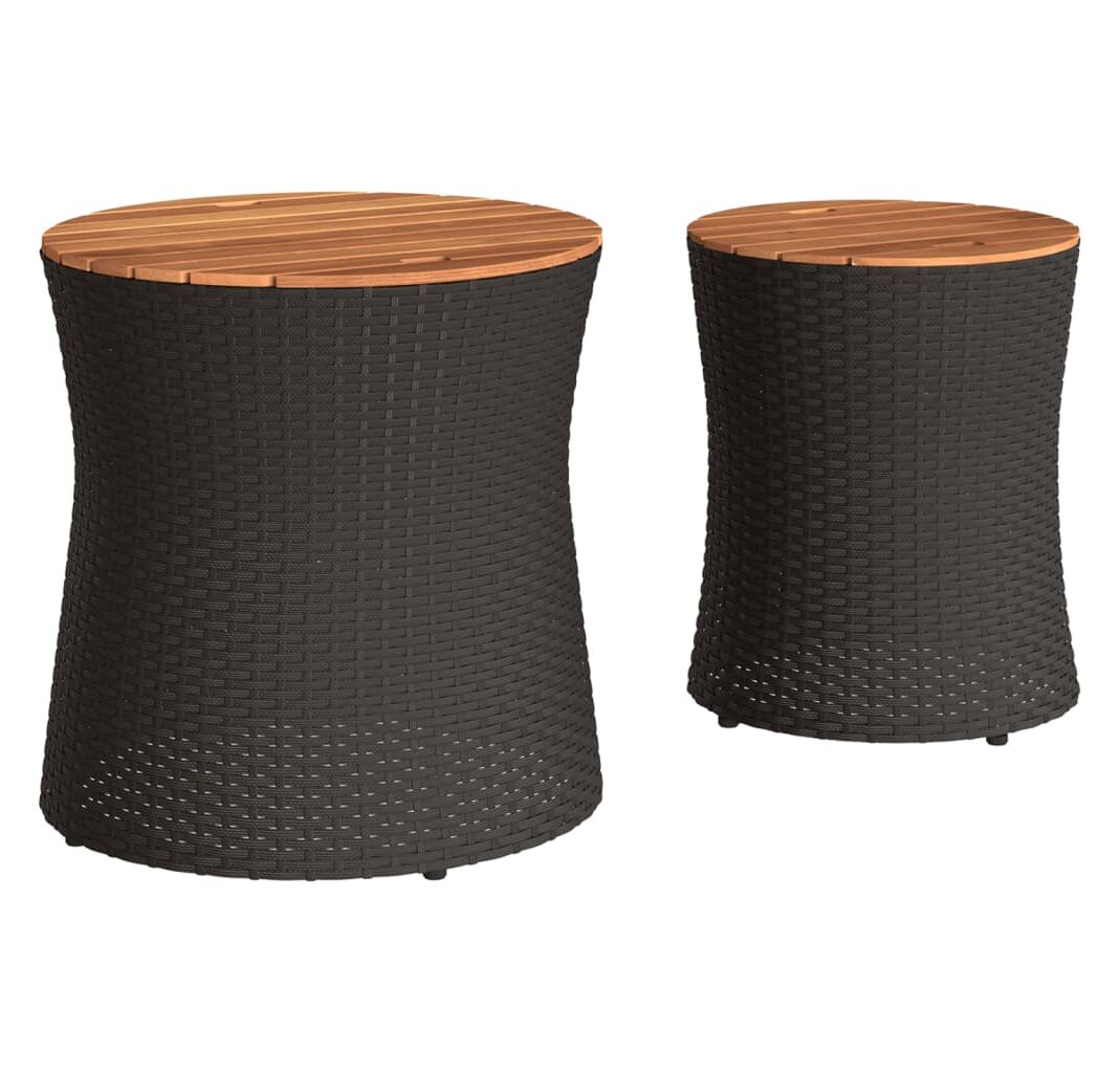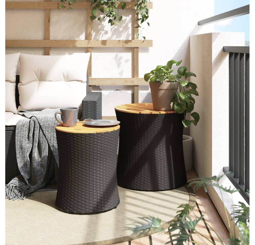 vidaXLMese laterale de grădină cu blat din lemn 2 buc. negru poliratan